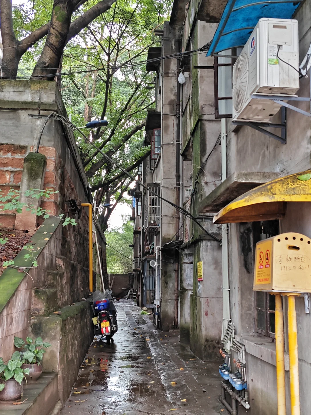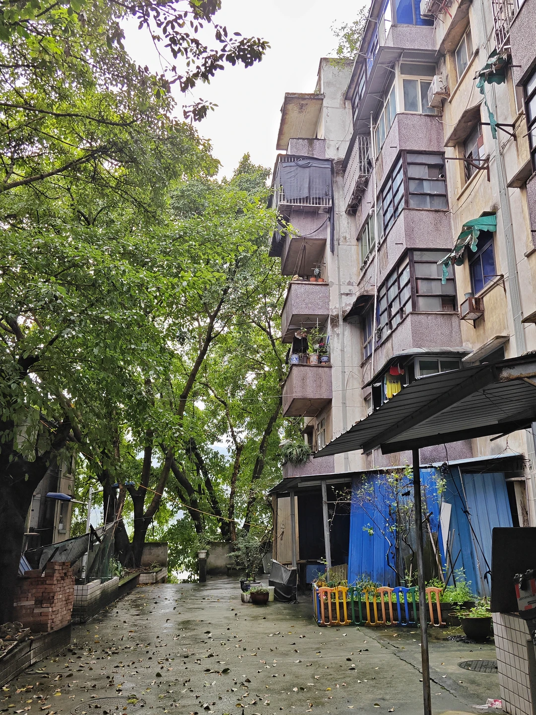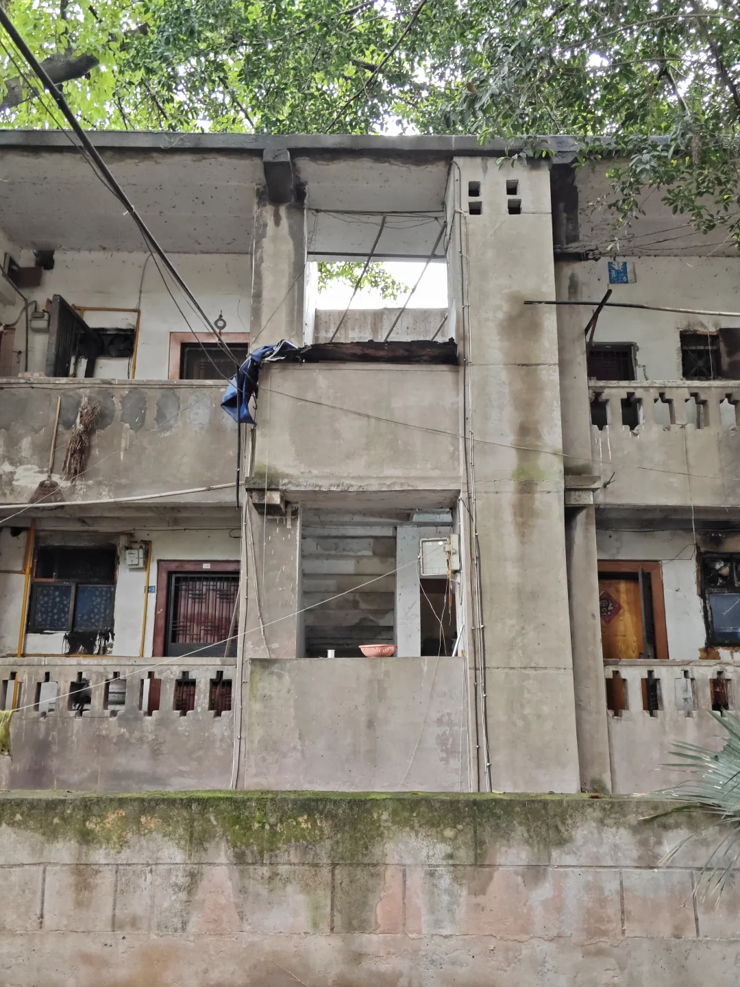 这次我去的是这个油库的家属区。毕竟在这里六十年,肯定有不少职工和家属要居住生活。他们的家属区叫做联合一村和联合二村,就在油库(中石油重庆销售储运公司)办公楼旁边。这里面家属楼并不太多,就十几二十来栋,毕竟这只能算中型企业。家属楼年代从1970年代到1980年代都有,1970年代的和巴南苦竹坝电建村家属楼差不多,基本算是独立套房,有独立厨房和卧室,但当年是公厕,后来才自己改造。这几栋预制板房屋已经非常破旧,最关键的是因为地理位置,面对岩壁,树木又多,非常阴暗潮湿,一下雨地上积水几天不干,蚊虫很多,特别是一楼问题有点具体。而且居民说防水也差,毕竟预制板房,这也是问题。当然价格也就很便宜,据说这些房子都只能卖两千多一平方,一套40平方的1980年代家属楼,十万拿下。主要太偏僻,要是在江北,我马上冲。