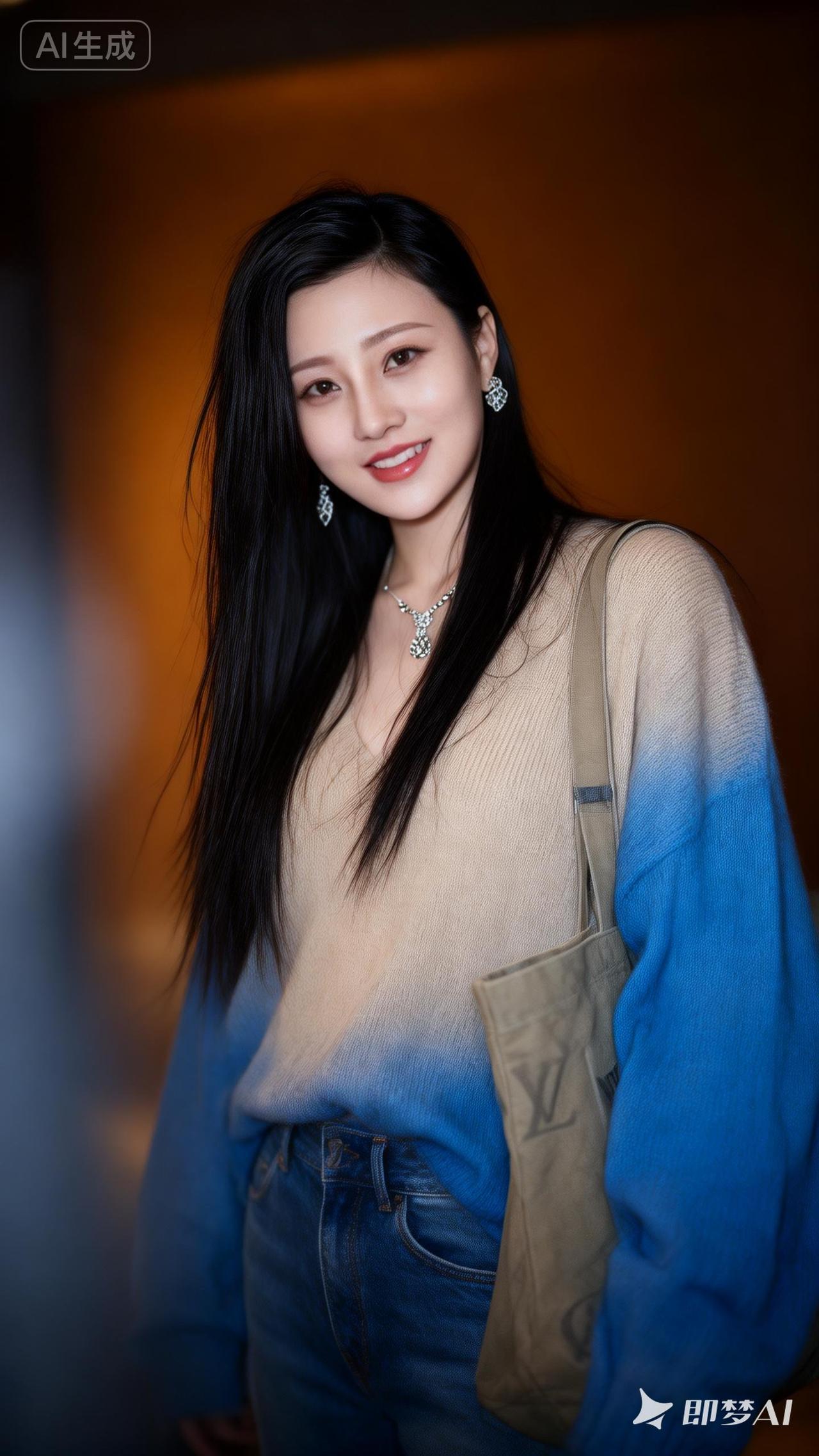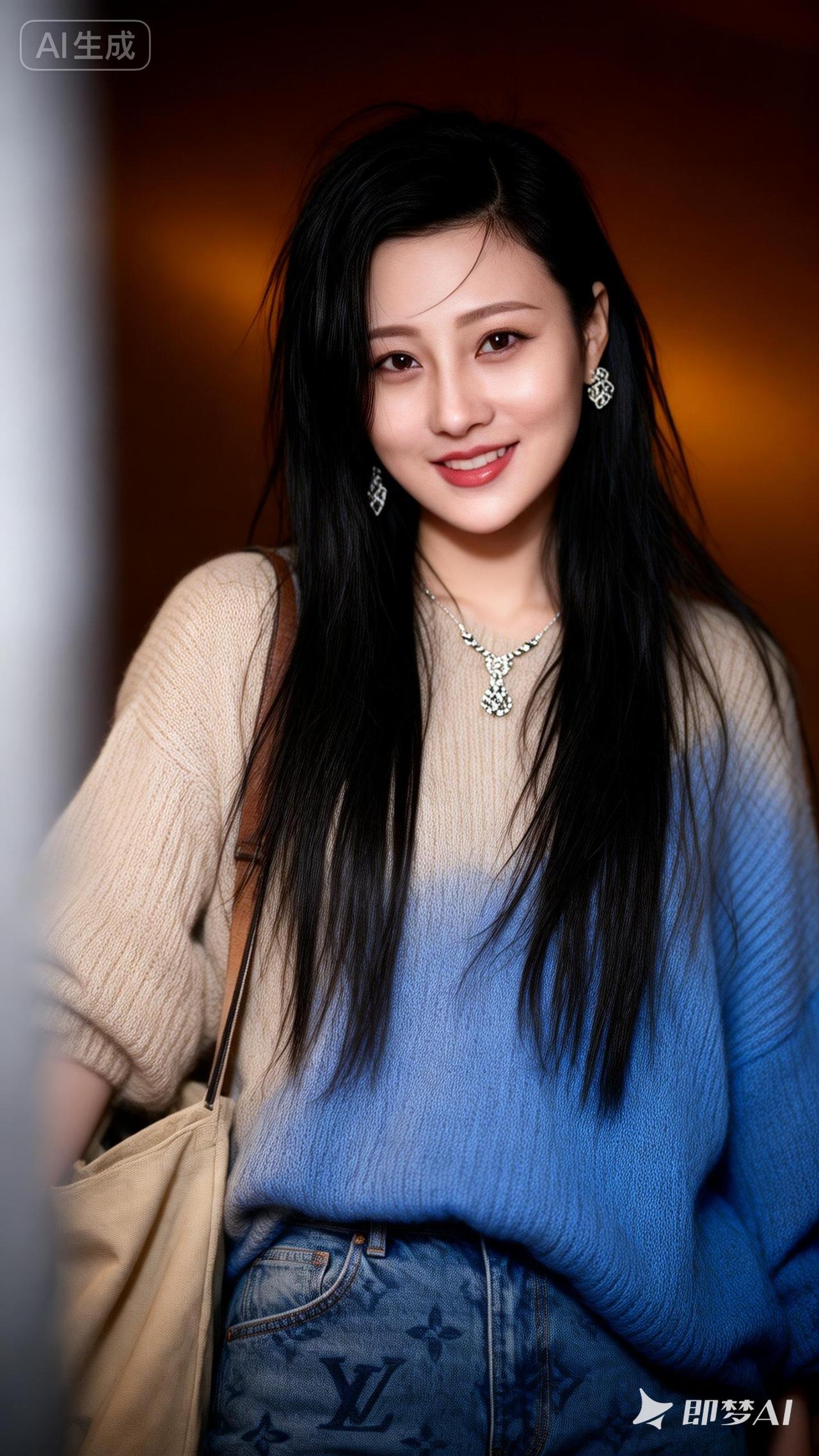 甜美少女风穿搭,蓝色毛衣+牛仔裤,轻松出街!💙👗👖