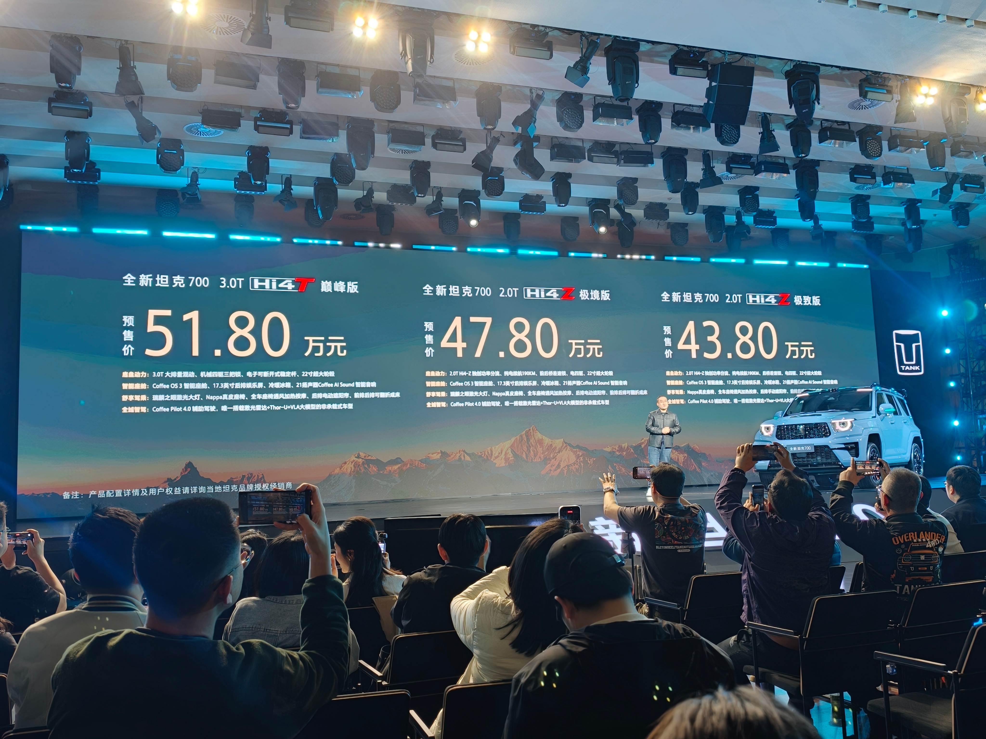 43.8万起!全新坦克700这次真的是城市+越野通吃的全能王,激光雷达+高阶智驾直接把硬派越野的智能化短板给补上了。再加上搭载VLA智驾大模型,高阶城市NOA入门即享。既能玩转硬核越野,又能轻松拿捏城市通勤,妥妥的全能旗舰了。🔥 预售价格- Hi4-Z 极致版:43.8万- Hi4-Z 极境版:47.8万- Hi4-T 巅峰版:51.8万