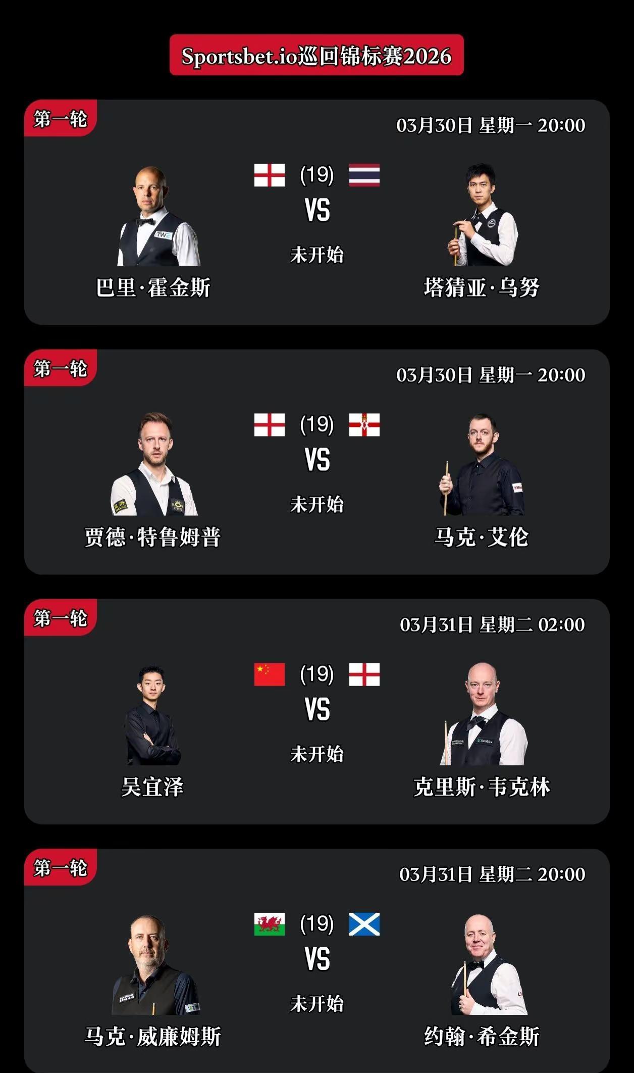 第2集|2026斯诺克巡回锦标赛第一轮12进8,第二轮¼决赛8进4。赛程时间对阵