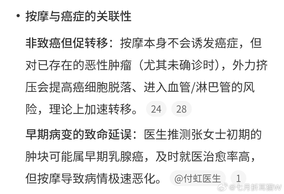 女子花上万办卡被按摩到癌细胞扩散原来按摩会促进结节转移,记下来,以后不舒服还是得去医院。
