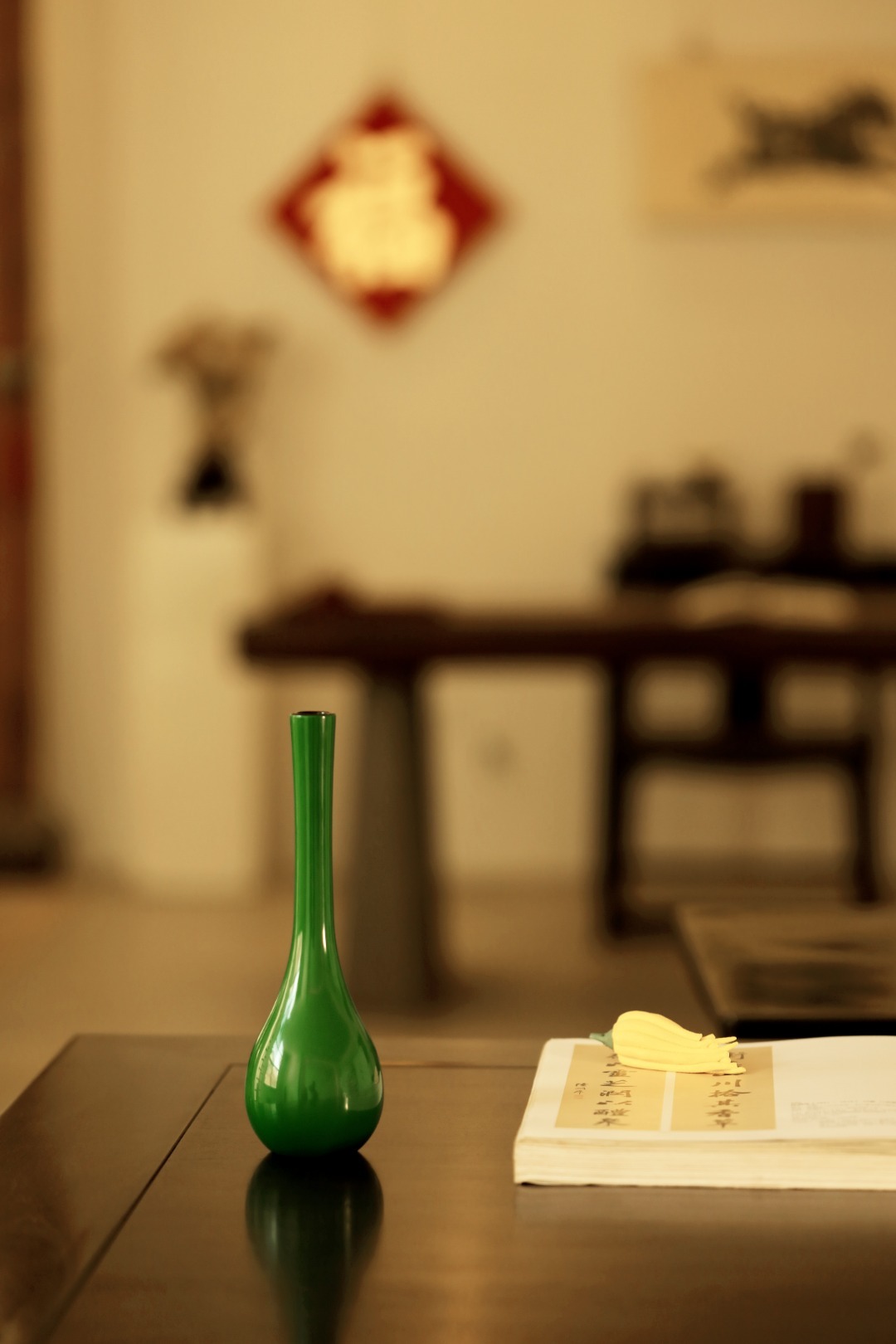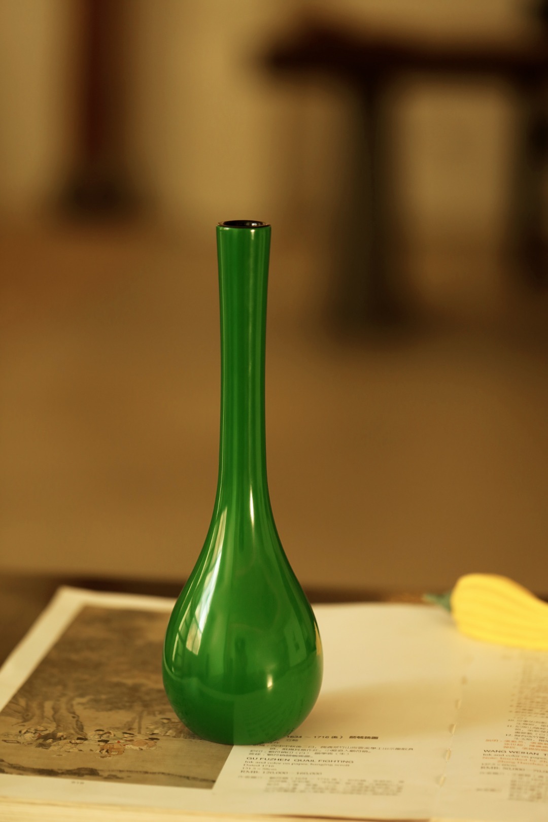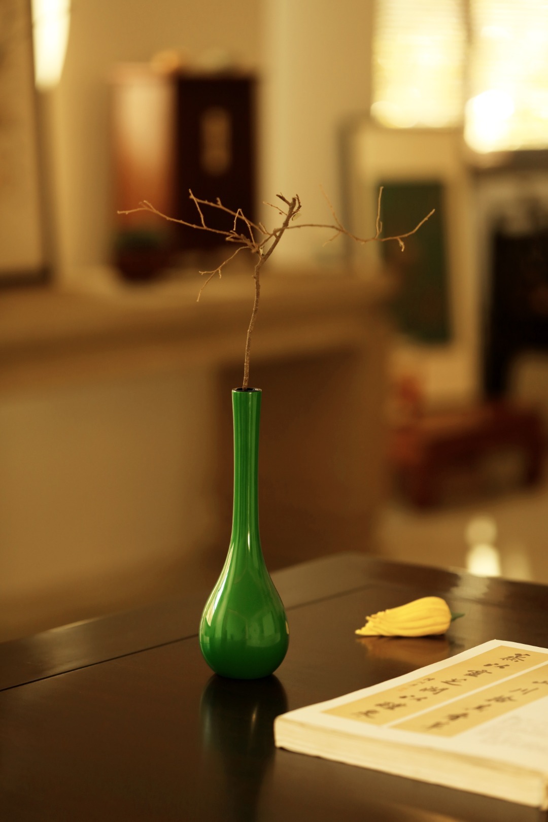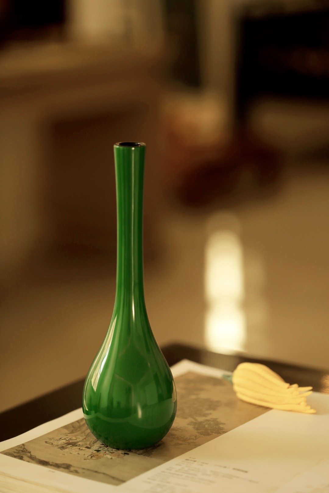 承循传统非遗工艺,髤饰大漆;入案头增色添彩,历久弥新。22.3*7.1*7.1cm 大漆 | 宝石绿·净瓶