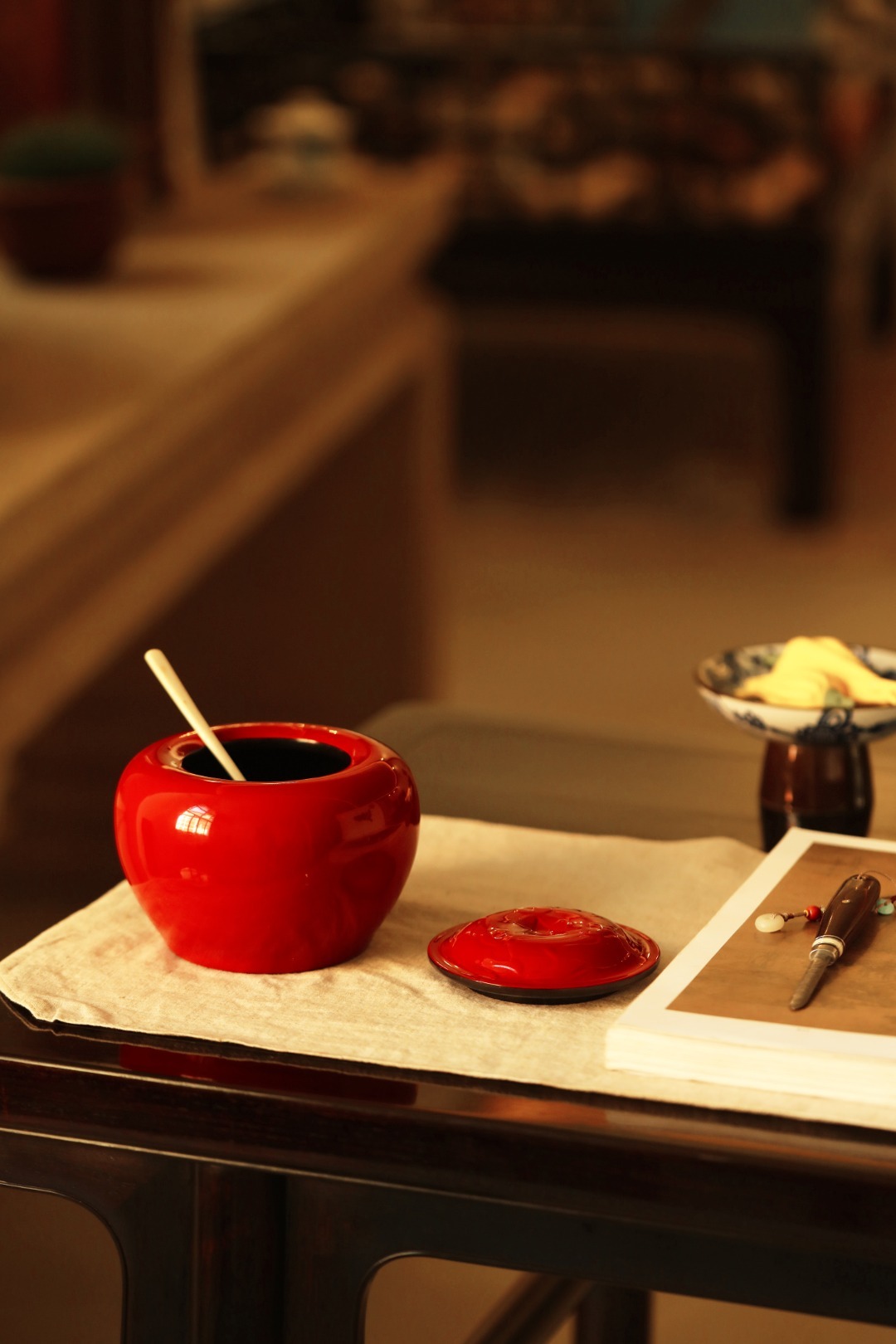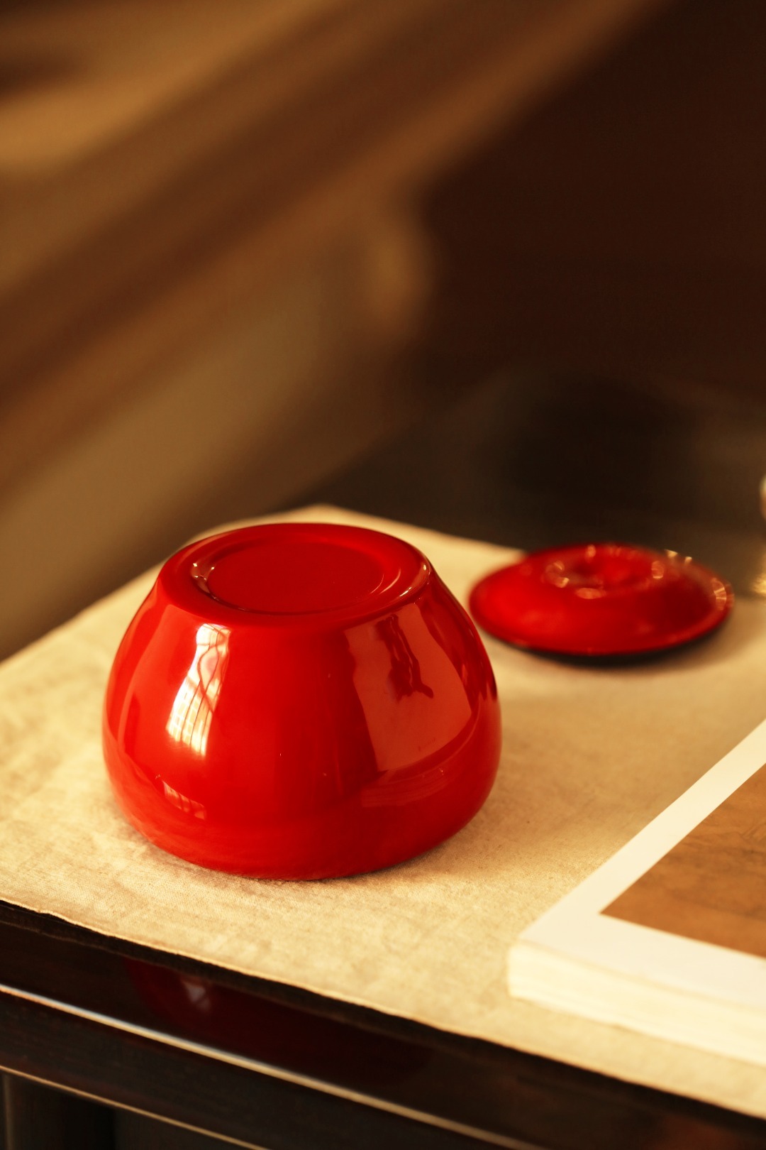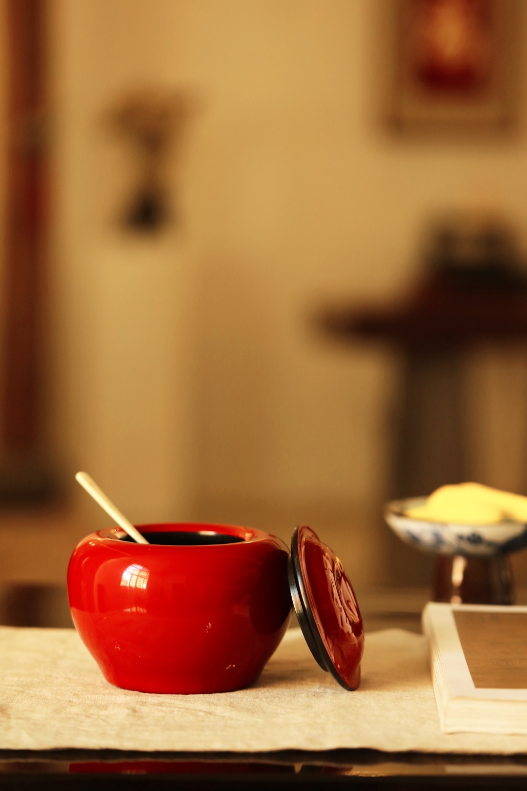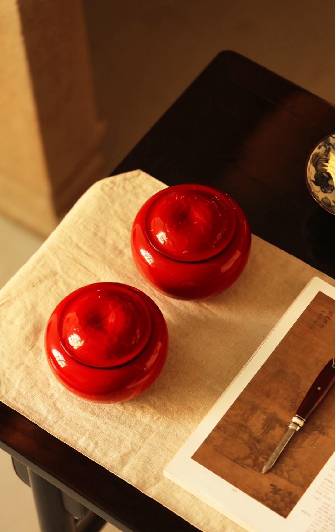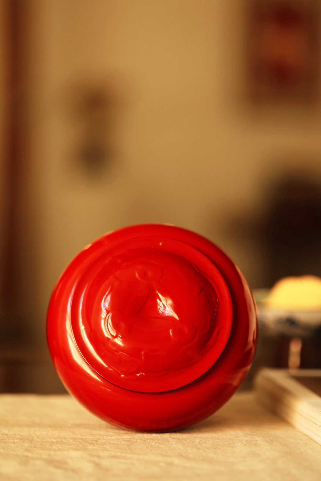 紫光檀为底胎,髹天然大漆,逐层髹漆打磨,工艺繁复细致,可收纳茶叶、储物,亦是围棋罐。始现芳华,明艳夺目。