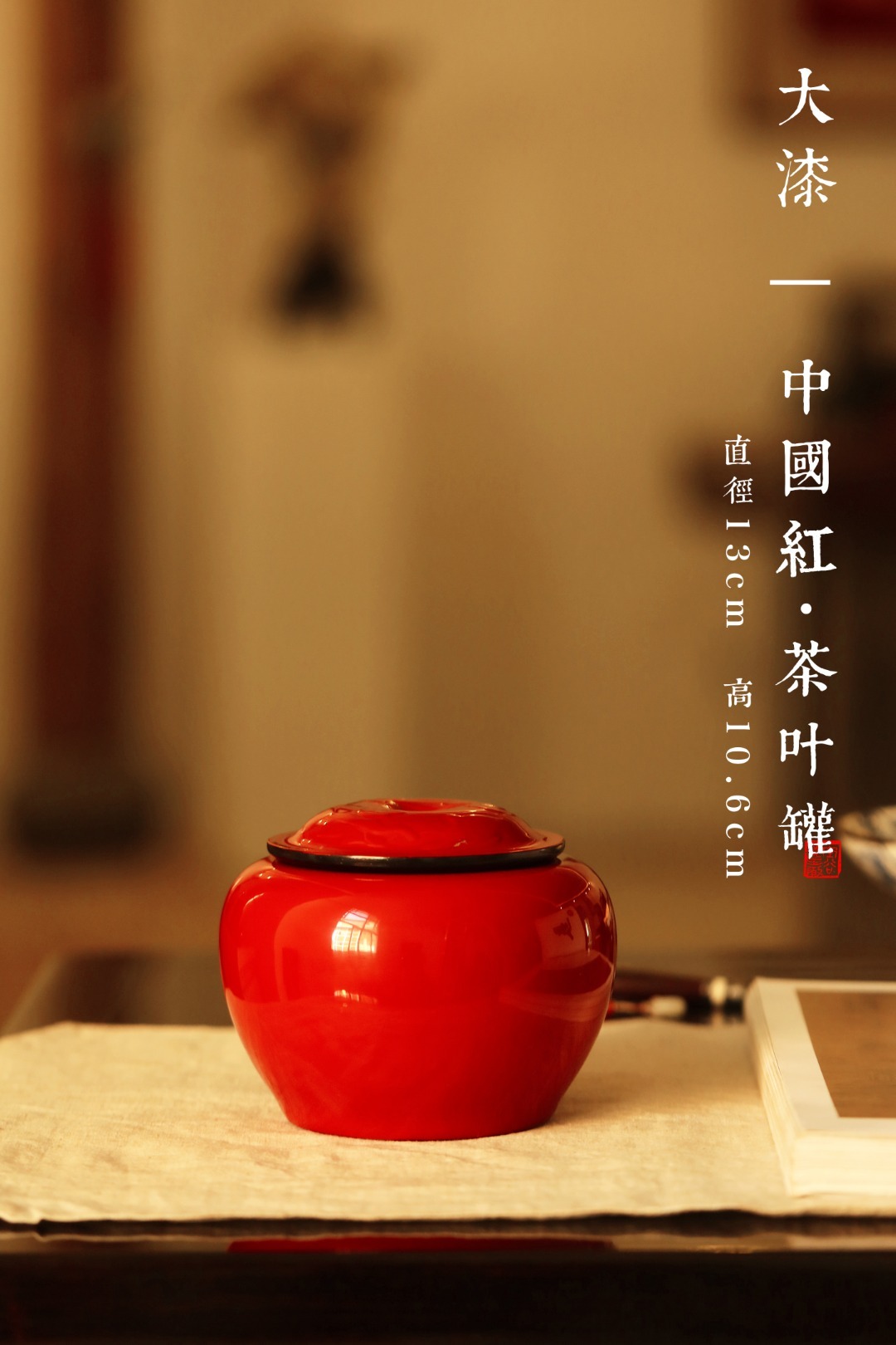 直径13cm 高10.6cm 重585g/个 大漆 | 中国红·茶叶罐 一对
