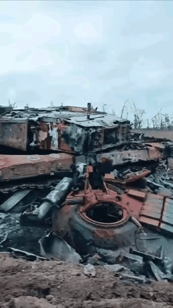 坦克嘛,说到底就是个铁皮罐头。看着凶,就算你把全世界最厚的装甲堆上去,也挡不住裤裆底下挨一记爆雷。一发穿甲弹过去,再强的装甲,它该穿还是穿。 你打在动力舱上,它趴窝。打在履带上,它趴窝。打在弹药舱里,那就不是趴窝了,那是直接起飞。 哪怕只是大口径机枪糊一脸,观瞄设备也得碎一地,瞬间变瞎子。 所以现在打仗,坦克单独出门就是送菜。单兵反坦克导弹、RPG、甚至炸药包和反坦克壕,随便哪个都能让它凉凉。更别提满天的无人机盯着拍,地雷阵等着踩,稍微脱离扫雷车开出来的那条小路,下一秒就可能变成废铁。 所以甭管什么“地表最强”“无敌防护”,在战场上就是个笑话。坦克能做的,就是在没挨打之前先开火,开完火赶紧跑。 谁要真把它当堡垒,那下场只有一个——炮塔飞天,落地十秒。大家可以心算一下该炮塔的飞行高度。s=1/2gt^2,按照9.8或者10差距不会很大,100米开外。