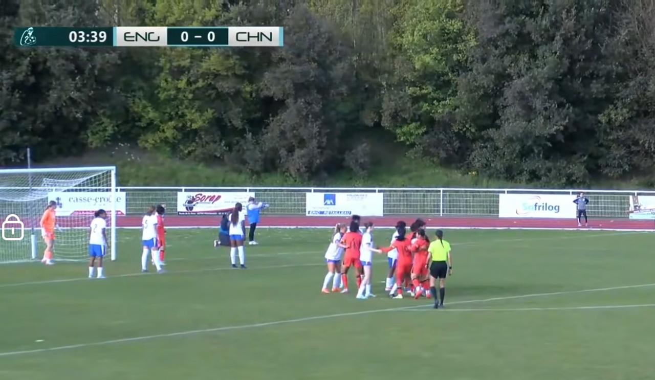 蒙太古杯中国U16女足上半场0比0英格兰U16女足,今天比赛双方是首次交手,比赛开始后双方中场拼抢比较激烈,中国女足场面占优,队员逼抢比较凶恨,双方打得比较乱,中国女足队员通过定位球制造威胁,任意球差了一点点,几次快攻最后一传质量欠佳,英格兰女足几次边路反击也极具威胁,上半场比赛比较焦灼,双方都始终无法打破僵局,上半场40分钟比赛结束,比分还是0比0,中国U16女足整体占优,射门也更多,但是得势未得分,希望中国女足下半场能尽早打破僵局,争取拿下开门红,中国U16女足加油!
