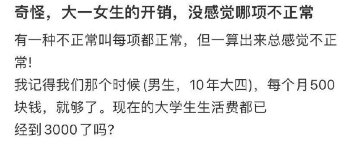 大一女生的开销,没感觉哪项不正常。