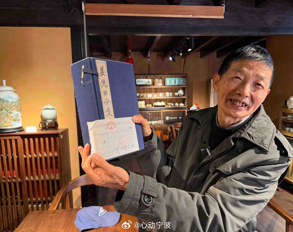 宁波老人用半生藏书读懂一座城 71岁的钱文华四十余年潜心收藏,为慈城留存文脉,现藏近万册书籍、三千余件慈城相关珍贵资料。他耗时五年寻得《姜先生全集》,视其为镇藏之宝。
