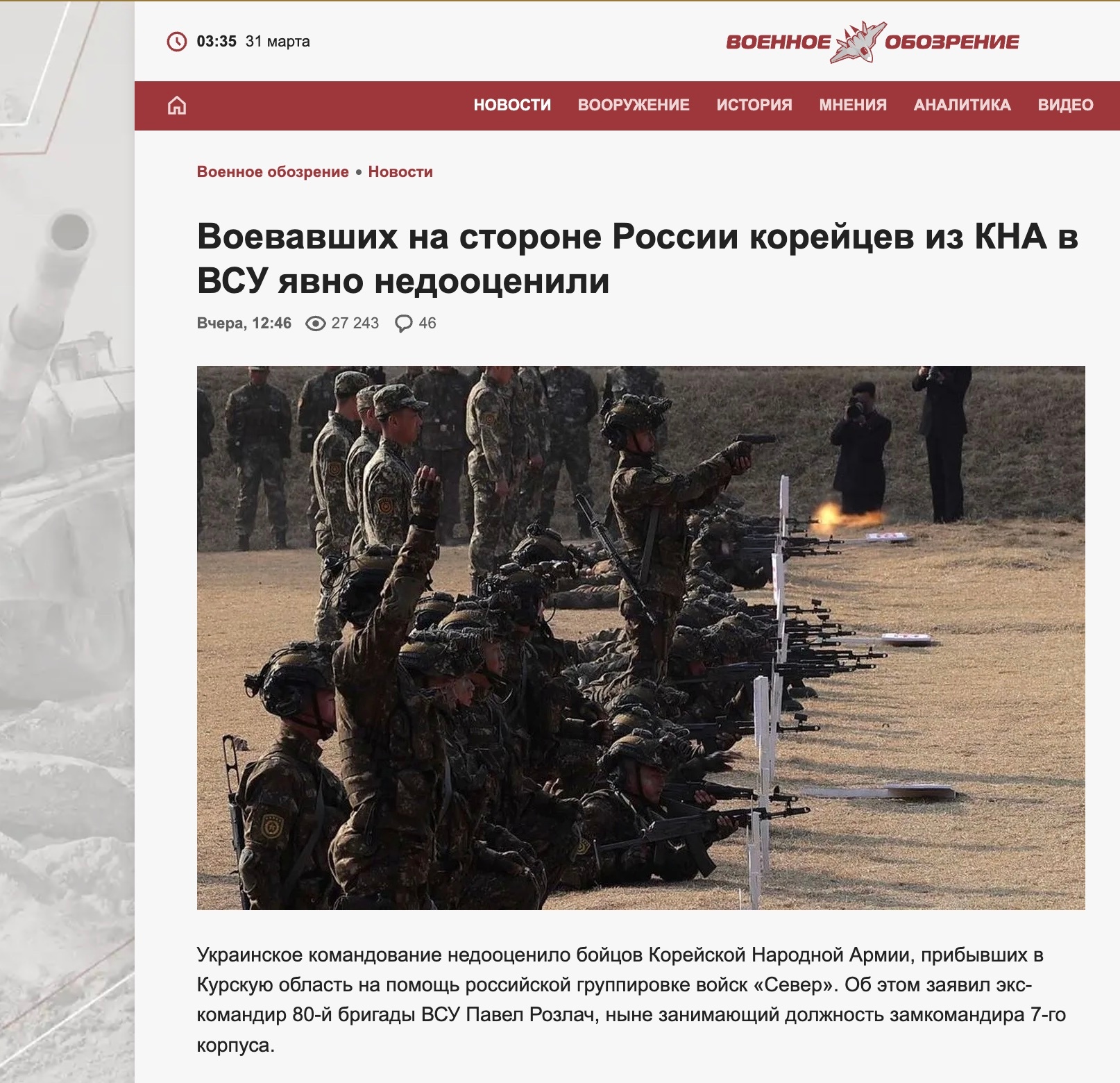 “事实证明,真正的朝鲜人民军战士与乌克兰人的先入为主的观念毫无相似之处。首先,他们的身体状况极佳,射击训练也达到了高水平。虽然他们的技术落后和对现代战争战术的不熟悉显而易见,但他们学得非常快。