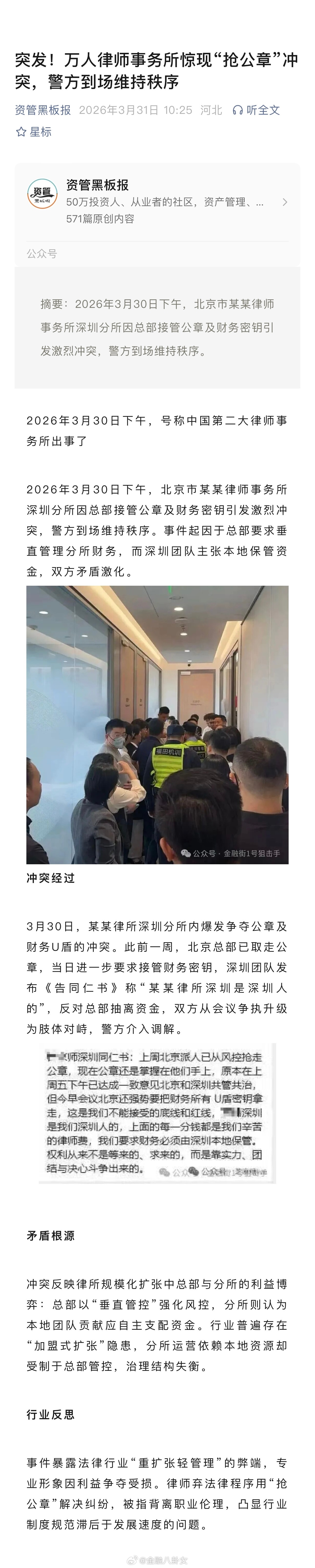 号称中国第二大律师事务所突发“抢公章”冲突