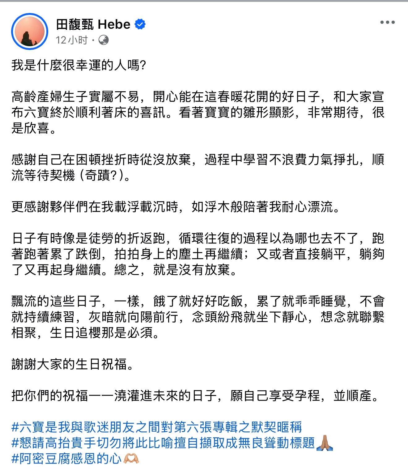田馥甄生日宣布六专来了!!恭迎六宝,开始期待!田馥甄个人第6张专辑即将发行