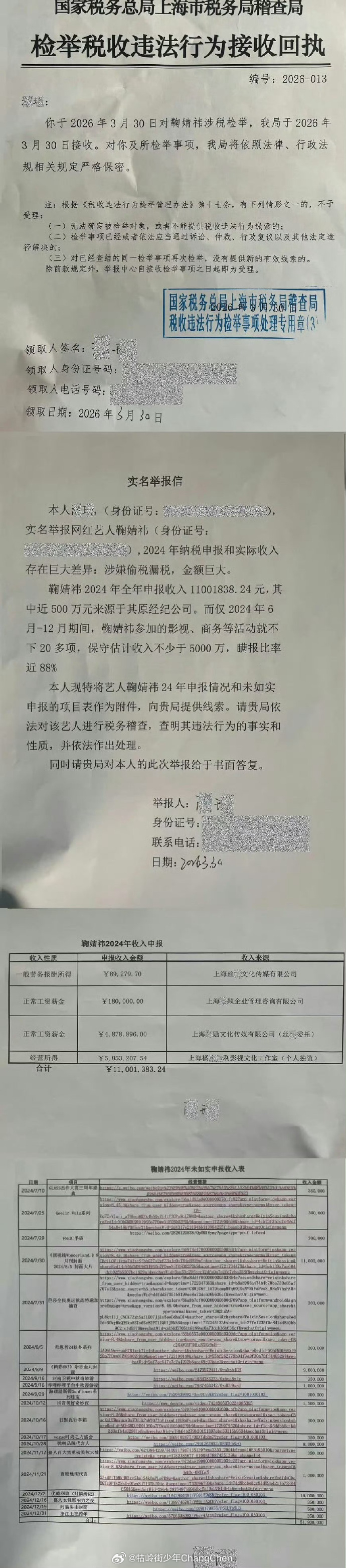 现在明星负面基本都是被举报税务问题了吧?鞠婧祎被经纪公司丝芭实名举报偷税漏税问题