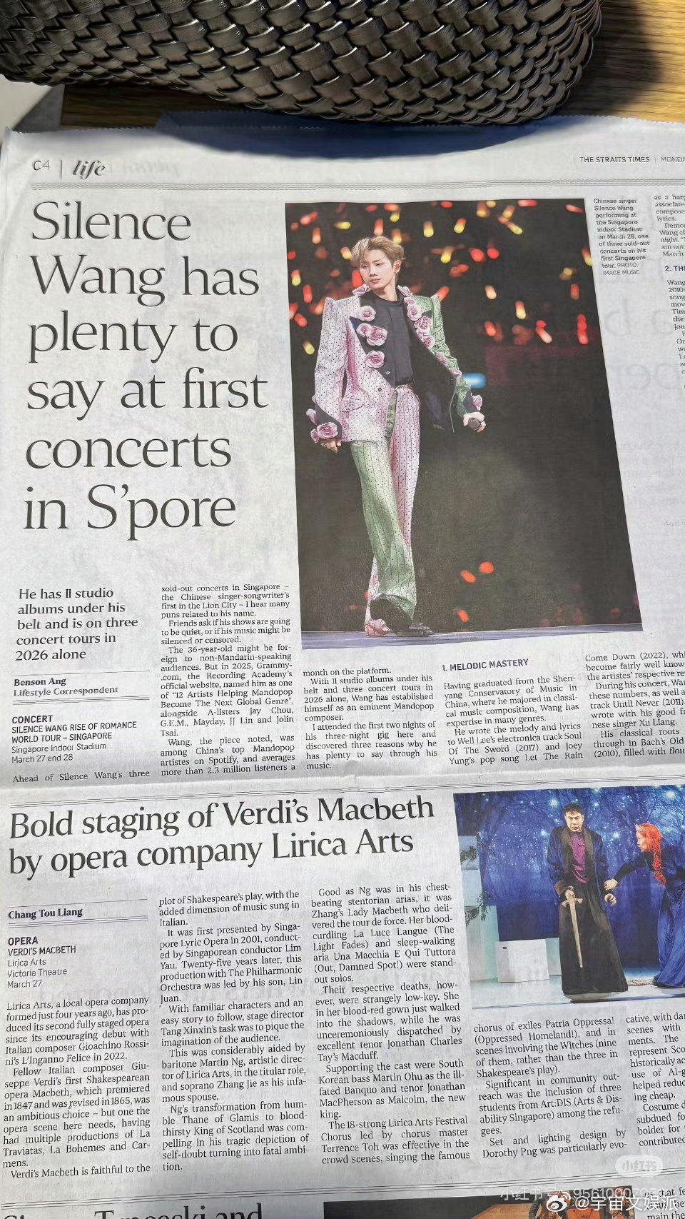 汪苏泷新加坡演唱会登报汪苏泷演唱会登报新加坡《海峡时报》整版报道汪苏泷世界巡演!