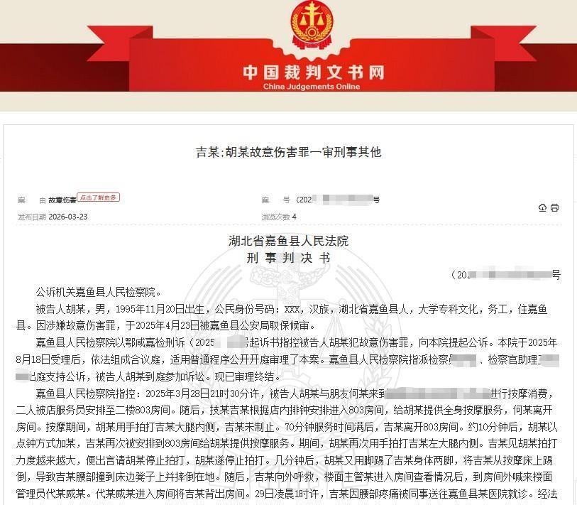 湖北,男子酒后到一足疗店按摩,期间,多次拍打女技师的大腿内侧。 女技师想着男子喝多了便没和男子计较,也没制止男子。 谁成想,这份好脾气反倒喂大了对方的歪心思。 这男的脸皮真厚,加钟之后动作越来越过火,甚至张嘴就要那些见不得光的服务。 小姑娘当场拒了,醉汉立马翻脸,几脚猛踹把人掀翻在地。 不仅害得对方两段骶椎碎裂,这男的自己也背上了故意伤害的刑事案底。 回看这事儿,姑娘开头确实算错了一笔账。 干服务这行的,心里总觉得多一事不如少一事,以为闭眼忍过这几十分钟就能太平。 可这恰恰给了烂人错觉:你的不吭声,在他眼里反倒成了“默认”和试探。 这教训够惨痛:宽容也得看给谁。 遇上这种借酒撒疯的咸猪手,你让得越多,后续的危险力道就越大。 遭遇越界的冒犯,当场把刺扎起来,远比硬着头皮扛要安全得多。 再说那个行凶的客官,事后掏大几万赔偿款换谅解时,动作那叫一个利索,可见他脑子清醒得很,压根没断片。 喝两杯黄汤,从来不是违法犯罪的护身符。 所谓酒后失去理智,其实就是仗势欺人的借口。 法律这记重拳砸碎了他的特权幻梦。 那份要跟一辈子的污点记录,纯属他咎由自取。 成年人世界里的尊严跟体面,绝不是委曲求全讨来的,而是锋利的底线撑起护城河的。 对此,你怎么看?
