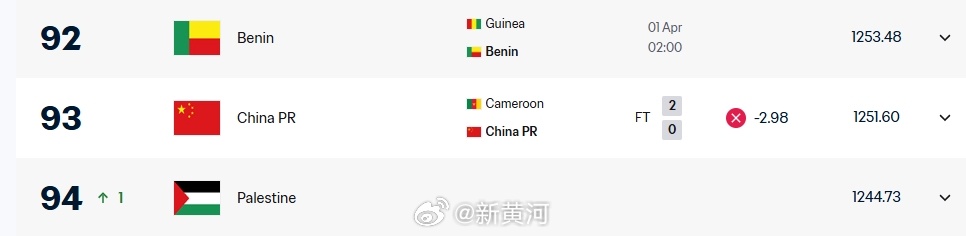 【#国足FIFA掉至世界第93名#】IFA系列赛第2轮,国足0-2不敌喀麦隆,此次FIFA系列赛1胜1负。赛后,FIFA官网更新实时排名,国足扣掉2.98分,掉回世界第93位。上一场国足2-0击败库拉索后,国足赚得5.51积分,FIFA实时排名+1,升至第92位。