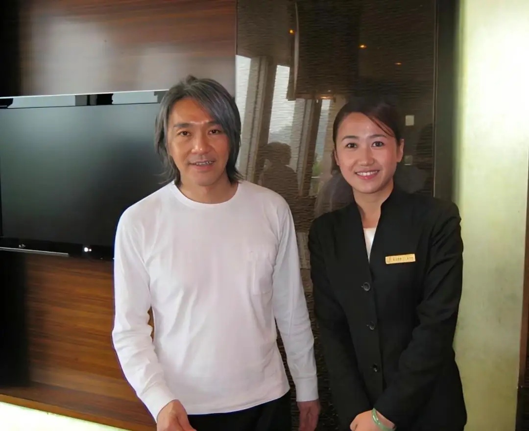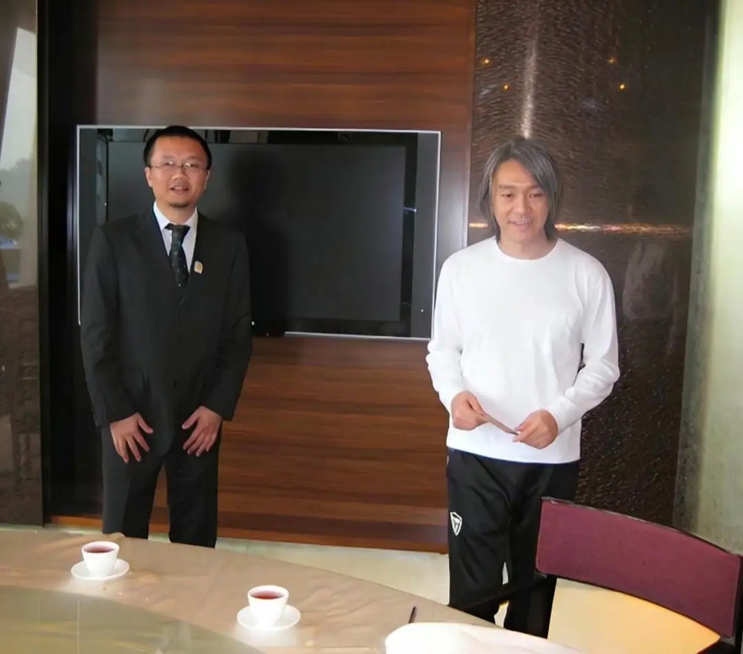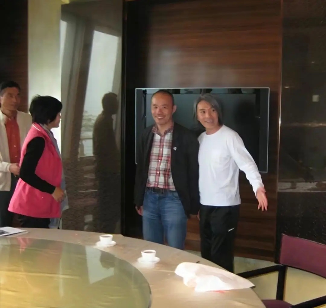 64岁周星驰和王石到酒店吃大餐,他看起来苍老了好多,有了很多白头发,身材消瘦,整