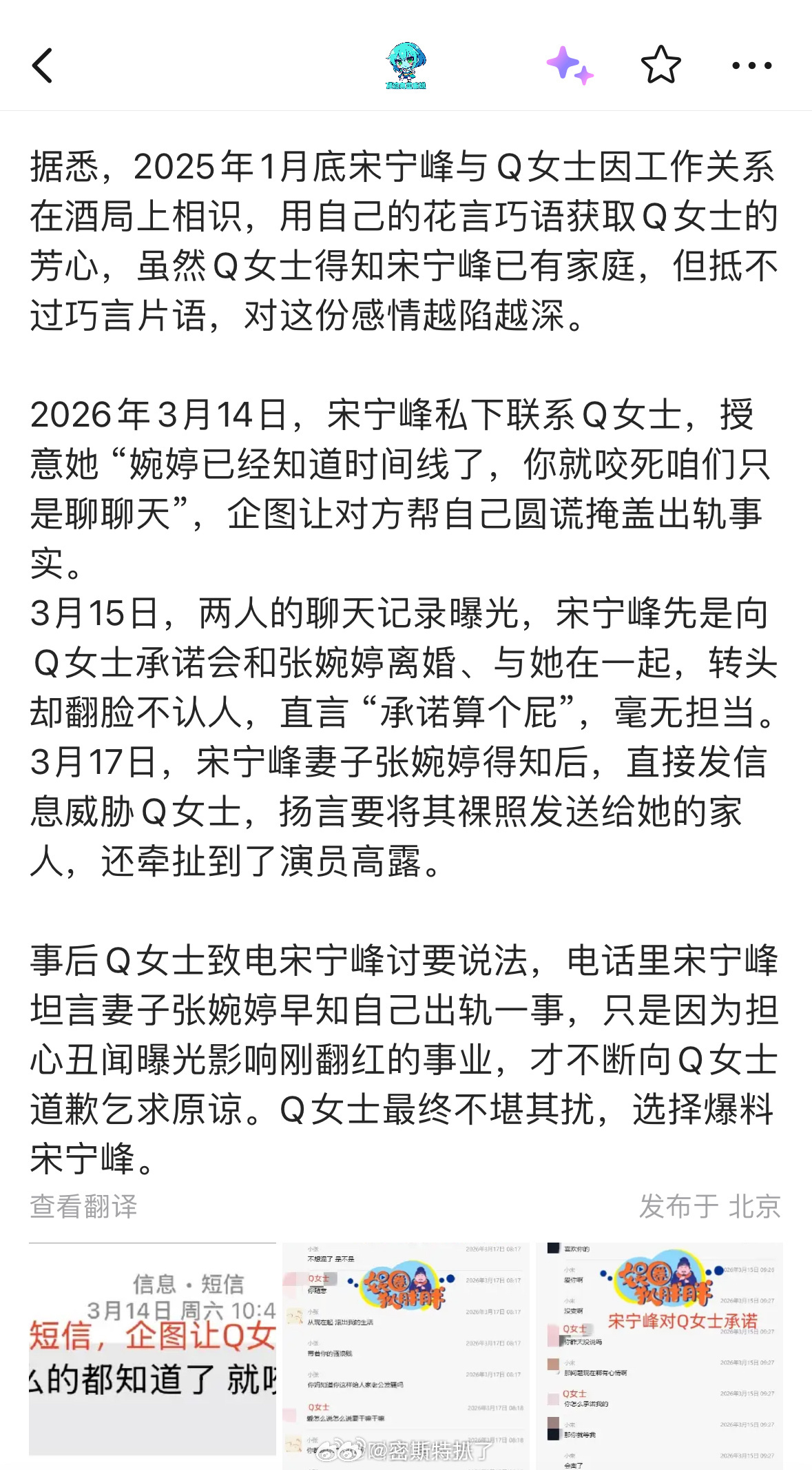 总结一下宋宁峰出轨喜瓜