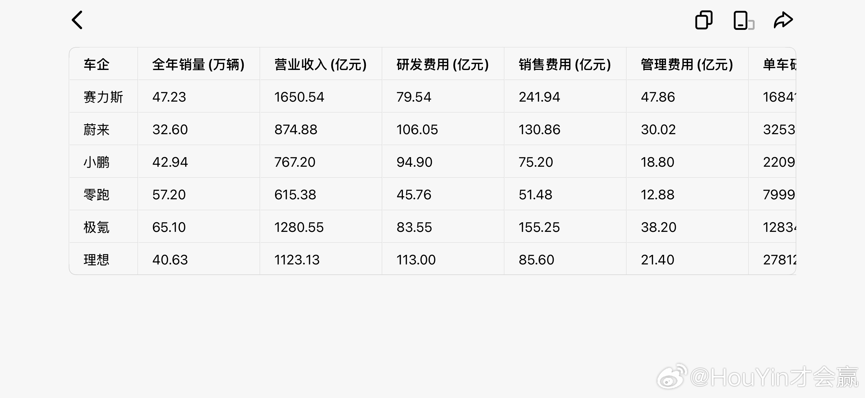 4. 费用率控制TOP3:理想(7.62%) > 零跑(8.37%) > 小鹏(9.80%)