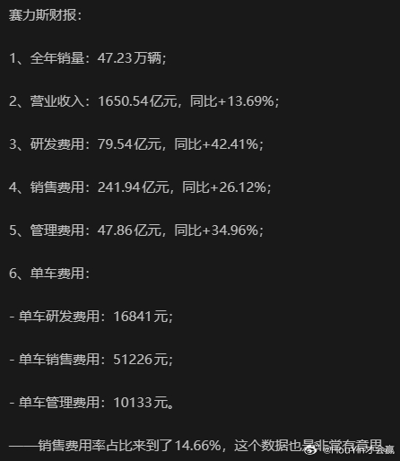 5.单车销售投入TOP3:蔚来(14.96%)>赛力斯(14.66%)>极氪(12.12%)
