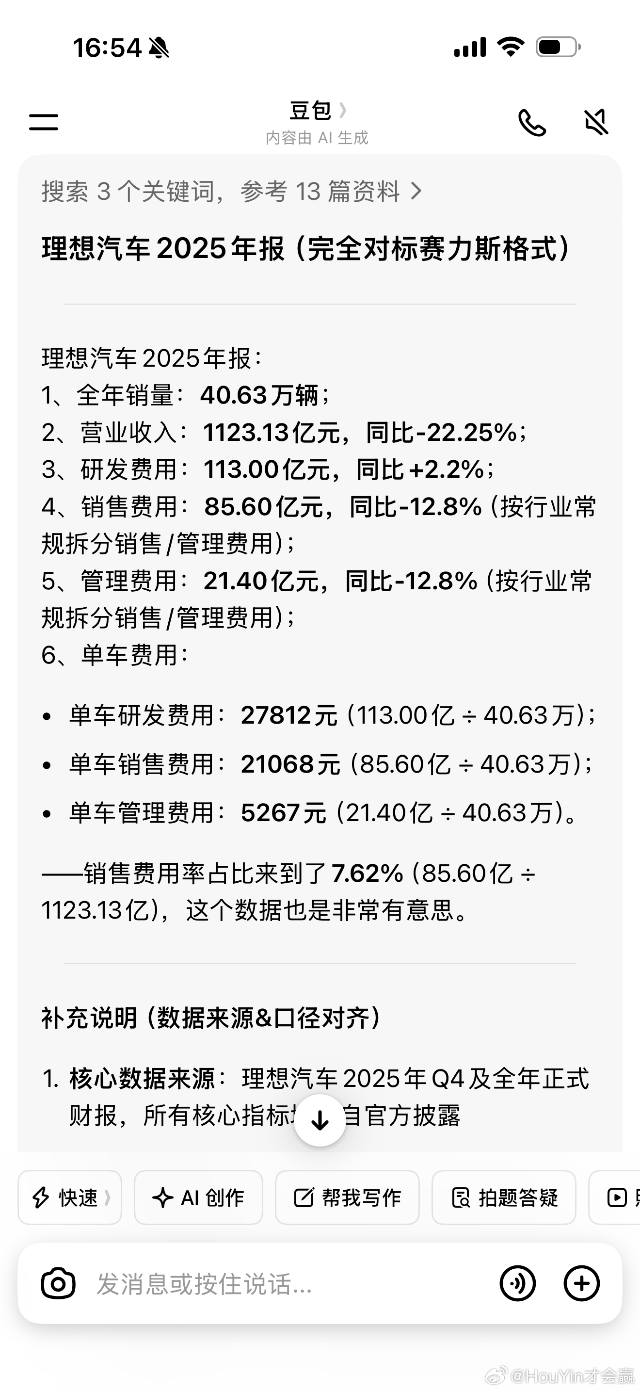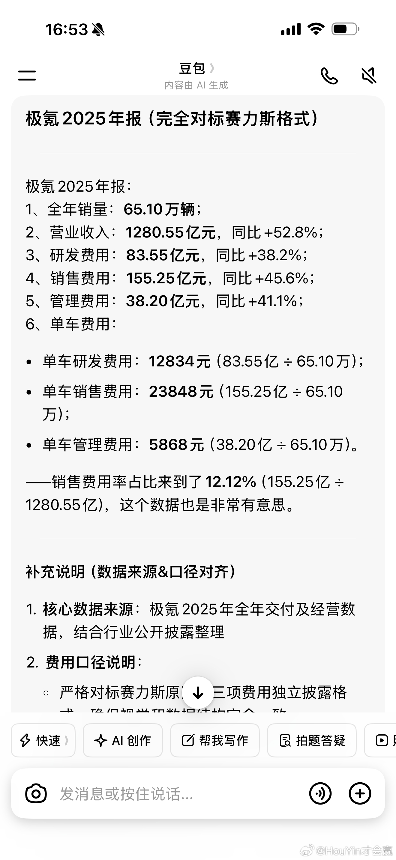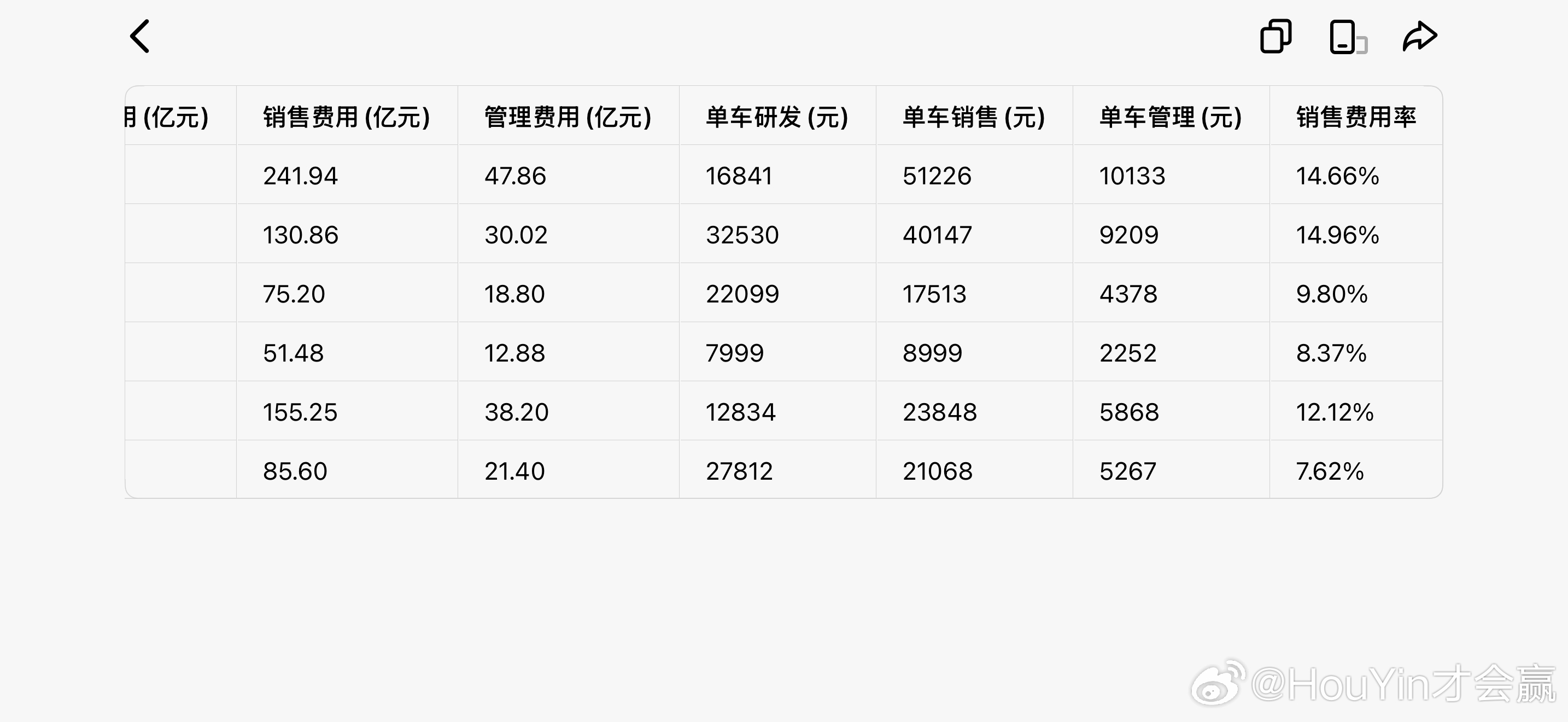按照图1让豆包生成了另外五家2025年财报版本大家可以看出单车研发/销售/管理费用