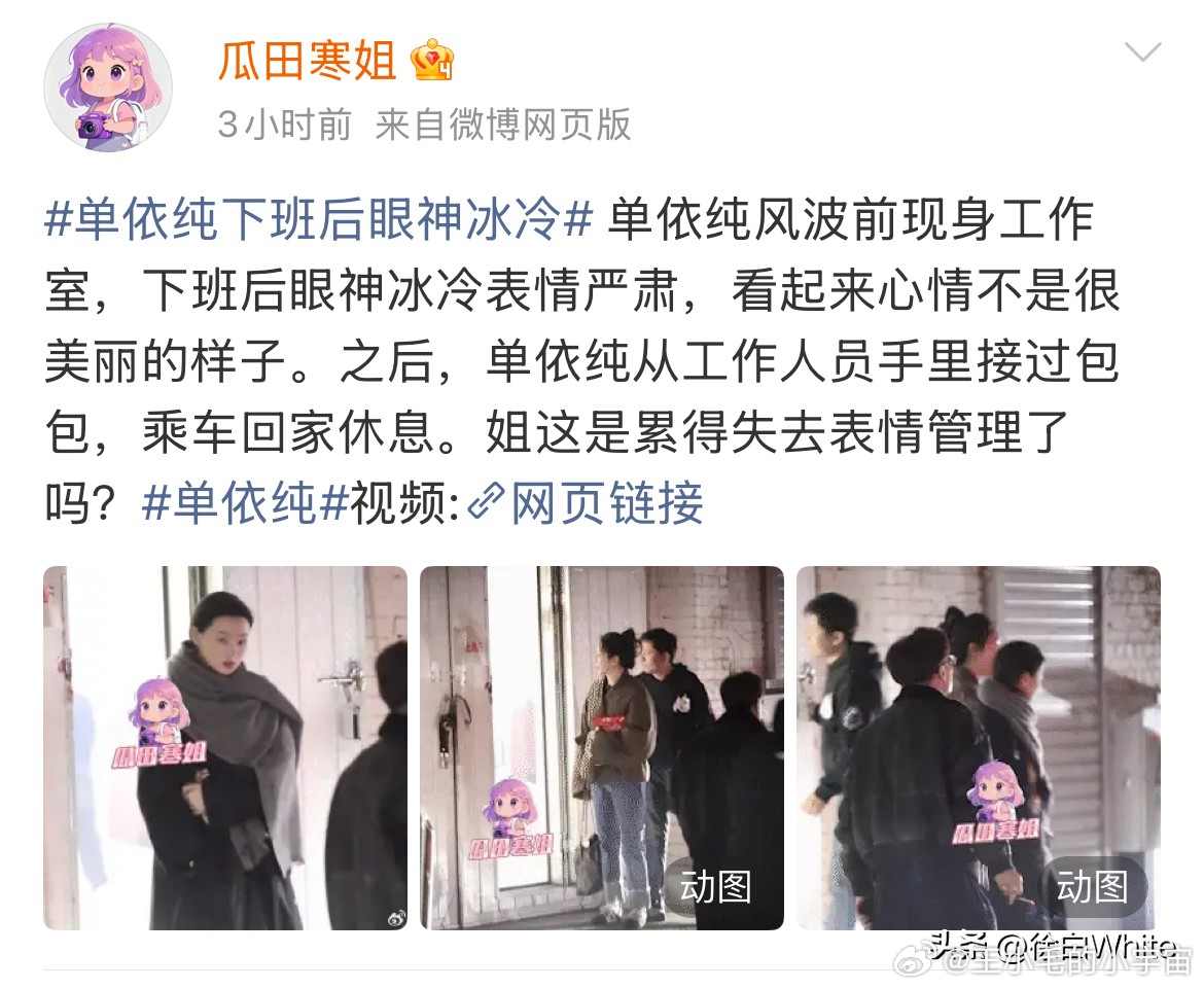 娱记拍到单依纯强行侵权演唱李荣浩的李白后现身工作室,下班眼神冰冷严肃,看上去心情不太好,直接丧失表情管理看完我想说有没有一种可能是因为单依纯发现娱记在拍她所以才眼神冰冷严肃呢[捂脸]另外,看单依纯在风波中直播维稳,整个人精神状态挺好的,处于亢奋状态,完全看不出心情不好的样子,她压根不在意李荣浩控诉她的强行侵权的事,作为总监制,把责任推给主办方后,再道歉,道歉文看上去也不是她写的,很公关……大家以为她很在意,很困扰,其实……并没有