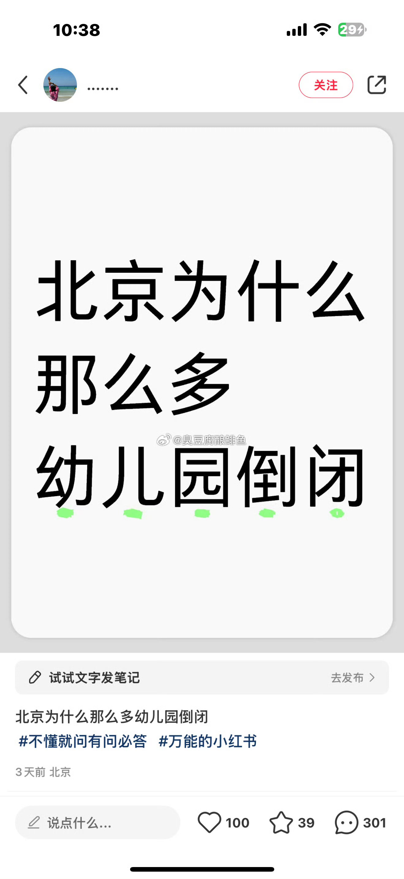 幼儿园持续关停幼师被迫失业最开始是母婴店倒闭,然后是妇产科关停,再然后是幼儿园,小学.....你要问这一切的问题在哪里。自然是图里面的那些人,宣扬不婚不育的人呀。宣扬女拳思想的同学呀。而且这些所谓的师范生说的“我可以不生,你不能不生,”打拳的终究会打到自己。还有一部分说可以去养老行业。确实,养老确实要人。但我们真的需要那么多养老院嘛。姐妹搬起石头砸自己的脚。这个时候,是大家看你笑话的时候了。