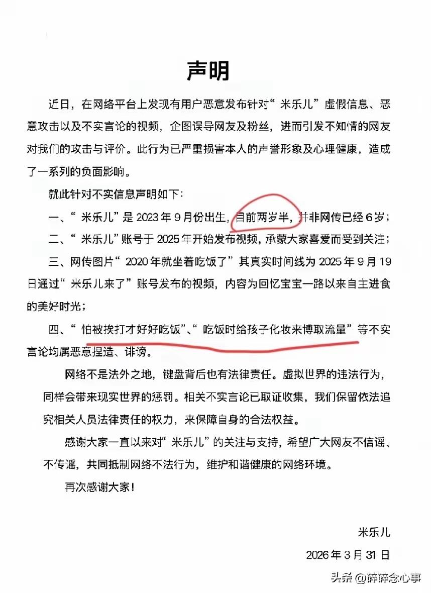 终于等来了真相,全网欠他一个道歉。 米乐妈妈把孩子的出生证明甩出来了——2023年9月出生,两岁半。不是网上传的6岁。 打脸来得太快。那些一口咬定“这么大孩子不说话不正常”“肯定是被逼着吃的”的人,现在该闭嘴了吧。 看看小米乐吃饭那个劲儿,满满一盆,吃得干干净净,给啥吃啥。多少家长愁孩子不吃饭,评论区都说了:自家孩子挑食的时候,就打开米乐视频当“下饭菜”。这哪是虐待,这是多少妈妈羡慕不来的“干饭基因”。 至于说话少——两岁半的孩子,本来就说不了几句完整话。我侄子三岁了还只会蹦词儿呢,这叫“贵人语迟”,真不是什么大事儿。 说实话,一个不到一年涨粉百万的小网红,妈妈被网暴到不得不晒出生证明自证清白,这事儿本身就挺荒诞的。什么时候两岁半的孩子说话晚也成了罪过了? 小米乐就是天生该吃这碗饭的,吃得香、长得壮、还招人喜欢。那些操碎了心的网友,与其在网上当“云鉴爹”,不如安安静静看孩子吃饭,多治愈啊。 谣言止于智者,也止于一张出生证明。两岁半还是六岁,答案摆在眼前了。这孩子,看着就像个可可爱爱的小饭桶嘛——这是夸他呢。 你感觉他有几岁?