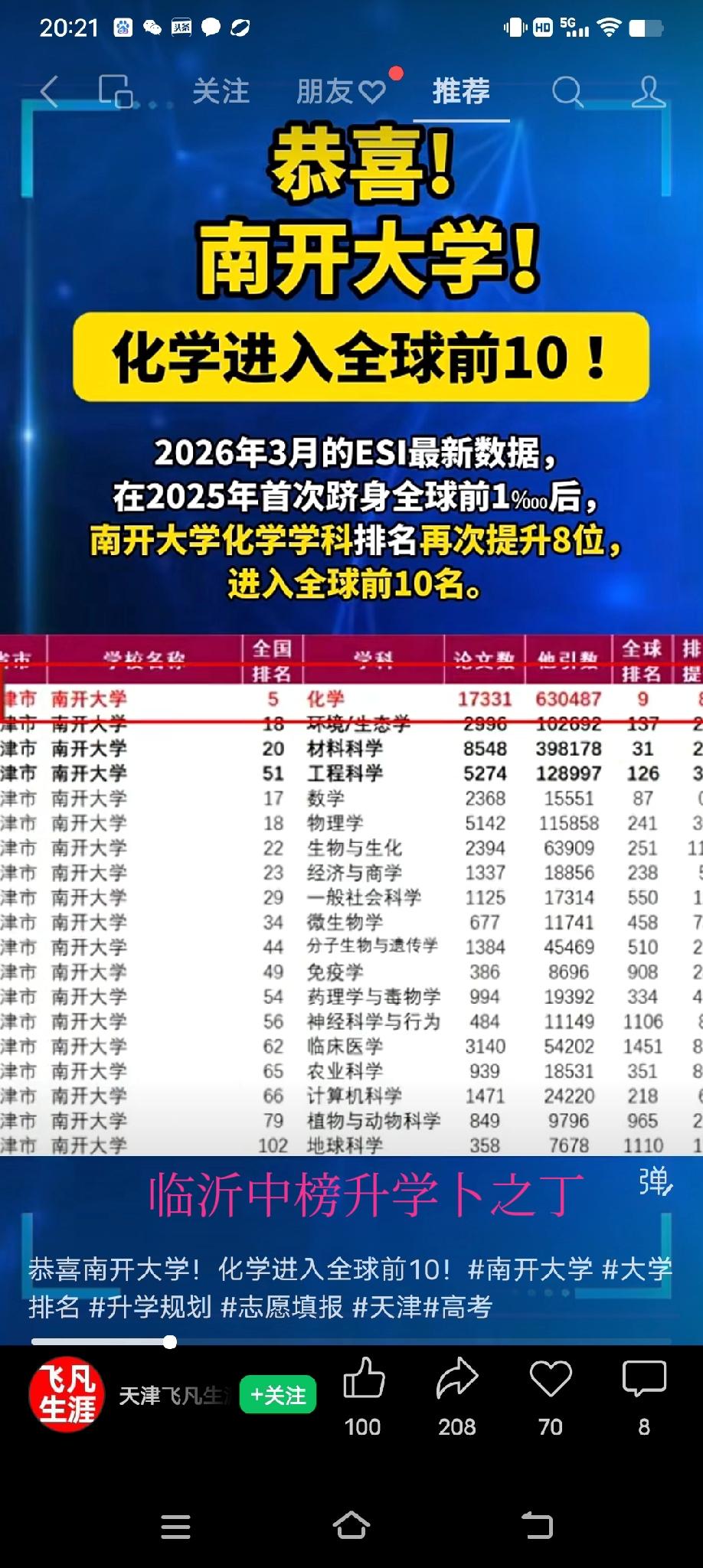 大家都知道南开大学的化学专业特别好,其实真的很好,最起码比大多数人想的要好!请关注!ESI最新排名:南开化学,进入全球前10,这就是南开大学的传统实力。欢迎大家留言文明交流!