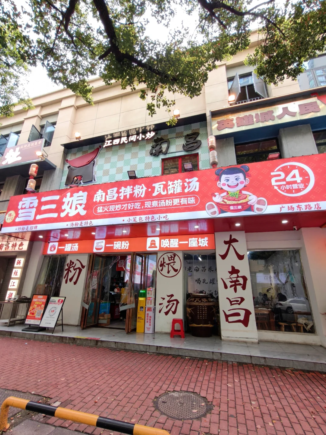 家人们!八一广场旁的雪三娘我能吃一万次!😭 24h营业太贴心了,深夜饿了直接冲! 三蛋🥚汤粉🍜必点!皮蛋、咸蛋、鸡蛋三种蛋的搭配太绝了,汤鲜味美嗦得停不下来!😋 牛肉🥩炒粉和牛肉拌粉也超赞,牛肉🥩很大一片,给的巨多,分量实在! 再来个瓦罐汤🍲配着吃,舒服!👍 酒糟鱼🐟咸香入味,凉拌鸡🐔脚爽脆过瘾,每样都不踩雷⚡!!! 妥妥的宝藏小店!冲就完事!🔥