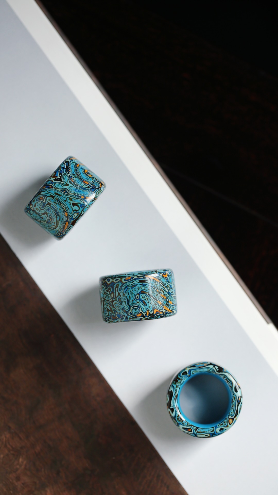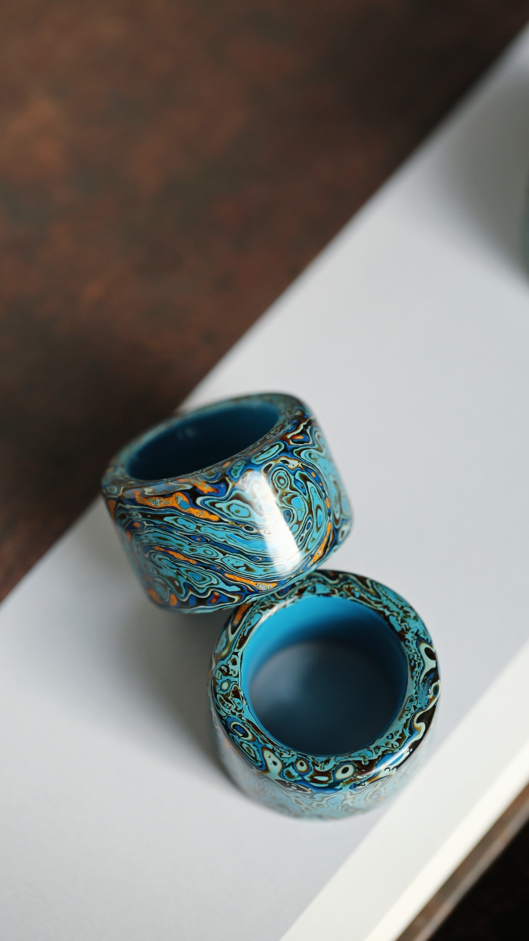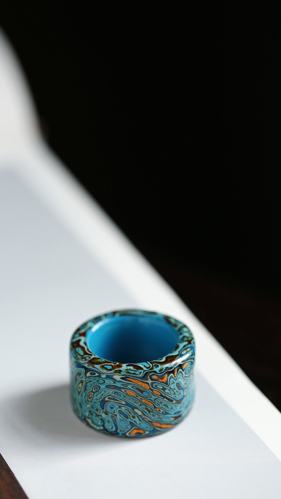 大漆 蓝·扳指传统大漆工艺,纯手工十数层的反复髹漆,肌理如水墨画,色彩鲜明,美不