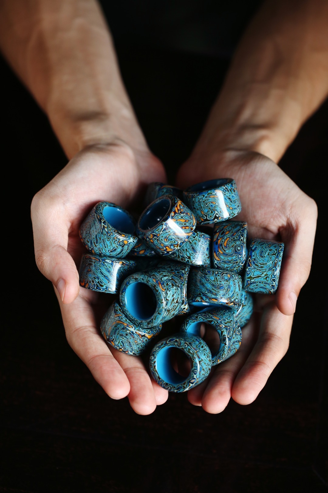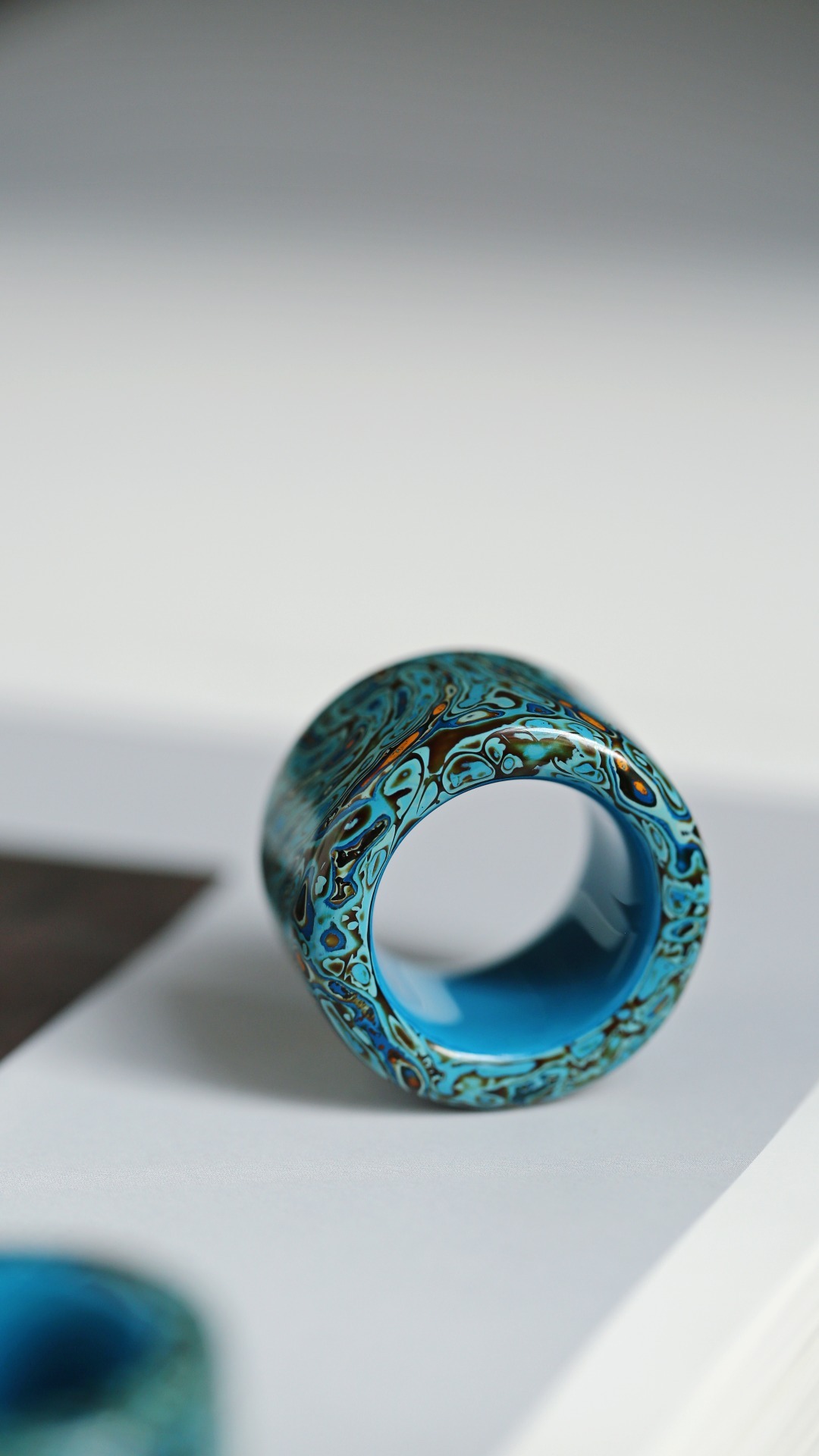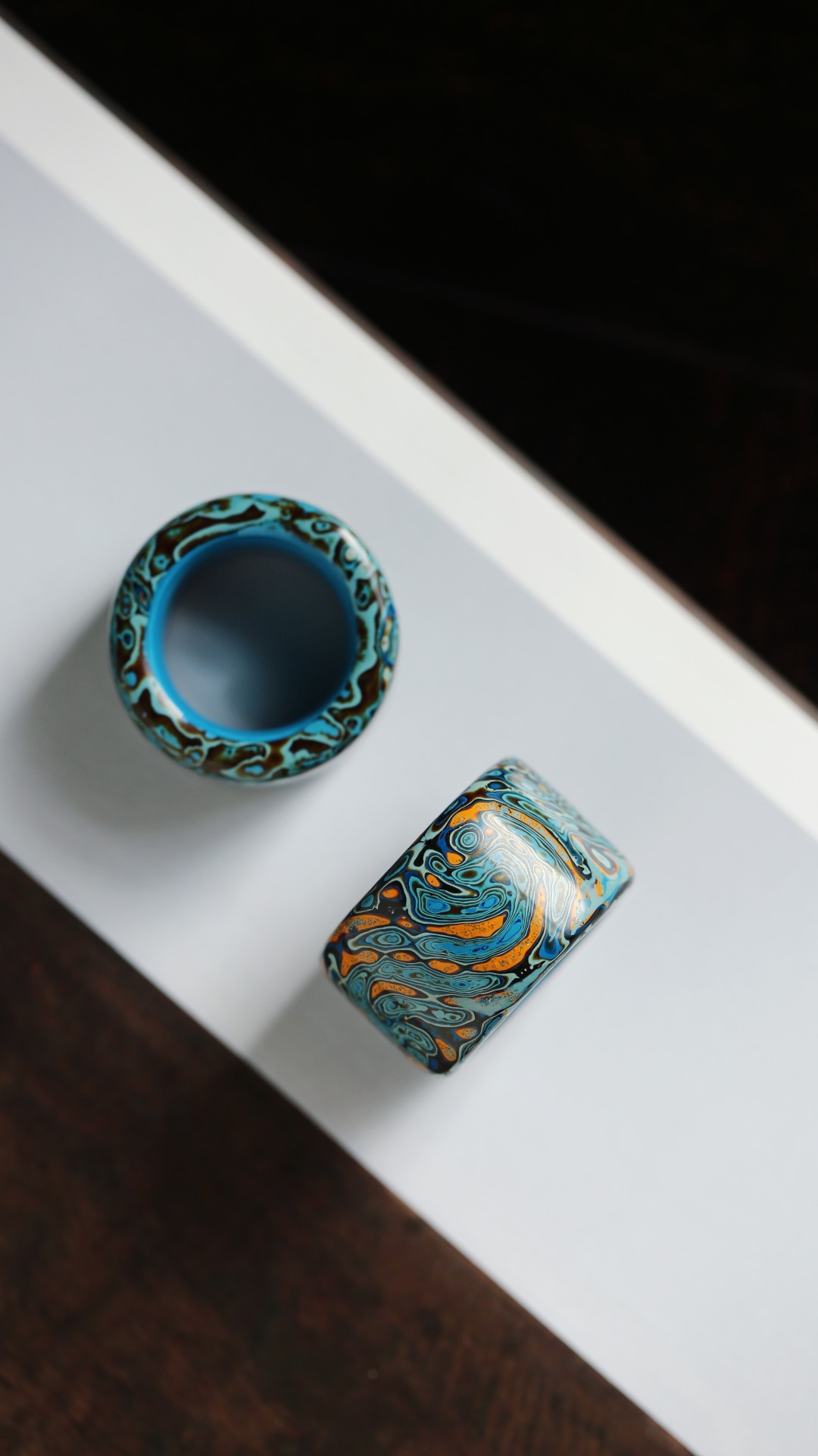 大漆 蓝·扳指传统大漆工艺,纯手工十数层的反复髹漆,肌理如水墨画,色彩鲜明,美不