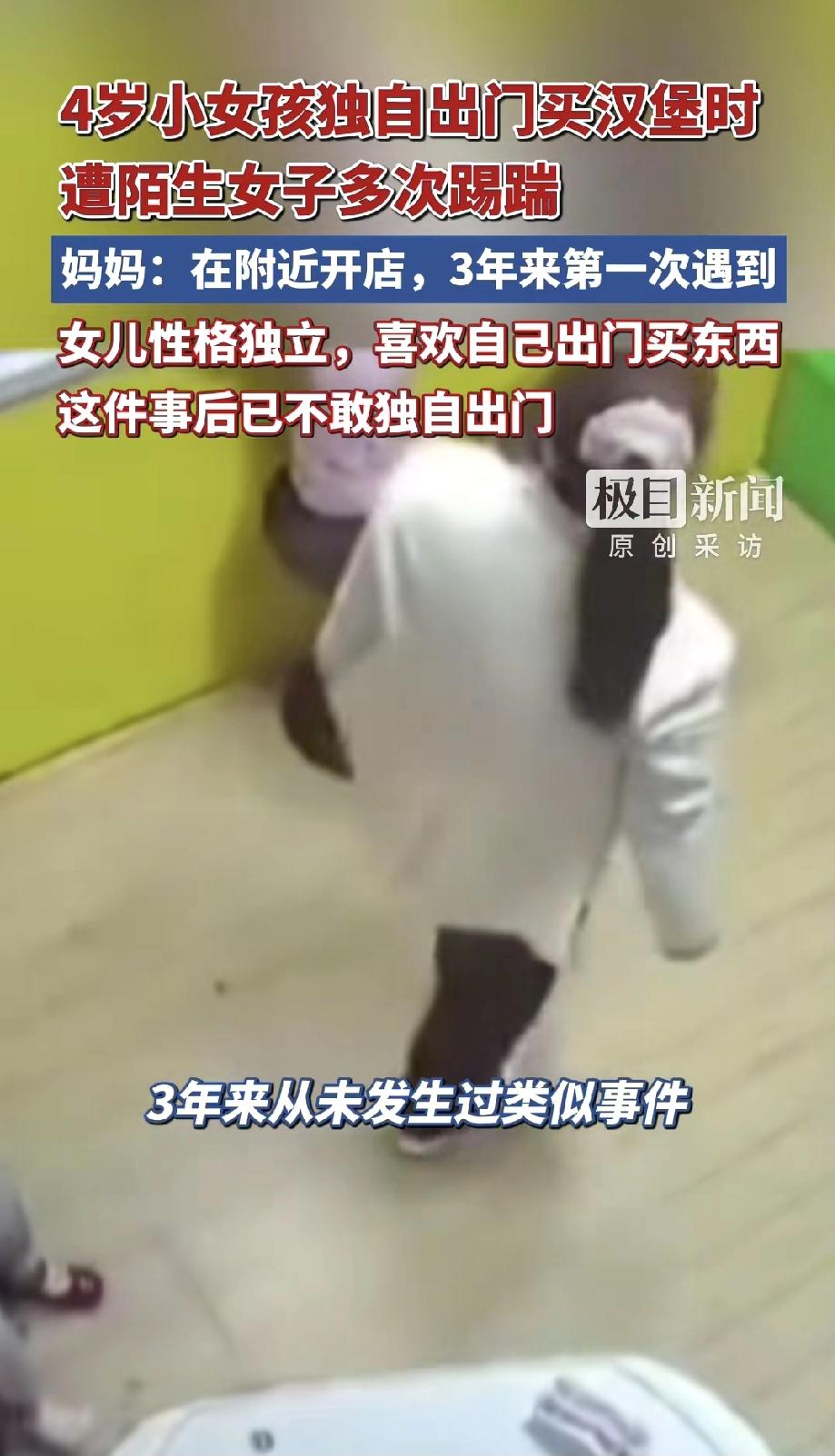 就因孩子抬了下腿?陌生女子竟对4岁女童下狠脚,真相出乎所有人意料! 河南一汉堡
