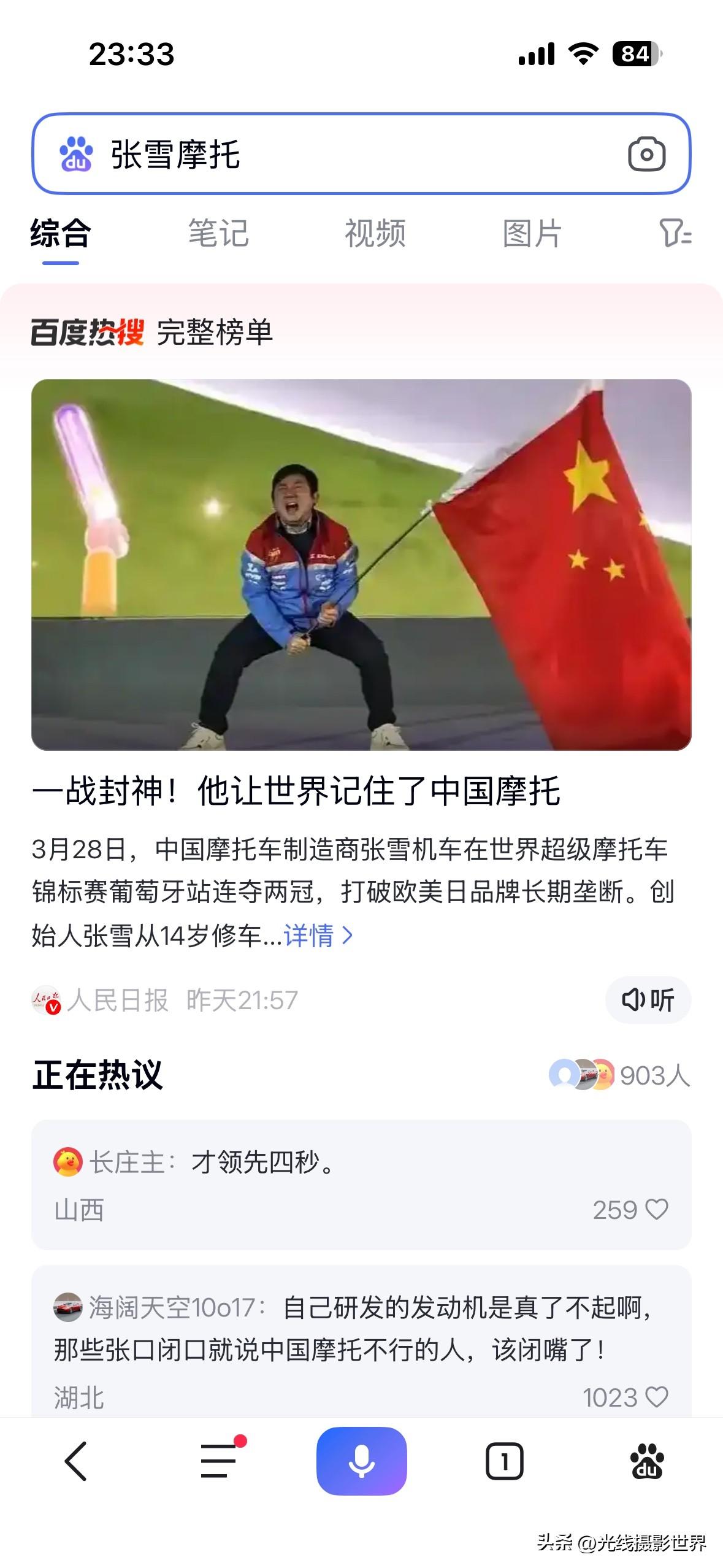 张雪的成功,不仅仅是张雪个人和中国摩托车的成功!2026年春天,各行各业的张雪们,将会如同雨后春笋般涌现,中国,可能会在几乎所有的工业制造业领域,拿下全球第一! 最近10年,中国的进步实在是太大啦! 去年,还记得吗?!索尼电视业务卖身中国厂商……放在20年前,你敢想象吗?! 2026年春天,日本本田传出来巨额亏损……德国,法国,汽车工业…… 2026年春天,中国,肯定有很多工业领域,还是不如欧美日,但是,只要大家有张雪这样的梦想和激情,说真话,就目前中国的产业链和人才供应来说,这些都只是时间问题! 张雪机车的夺冠,其实是吹响了各行各业彻底击败欧美日的冲锋号角! 每一个有梦想的中国人,未来10年,将会亲眼见证中国成为名副其实的绝对的世界第一强国! 2035年,中国成为世界第一强国!不是梦! 光线摄影世界曾兰谈天说地