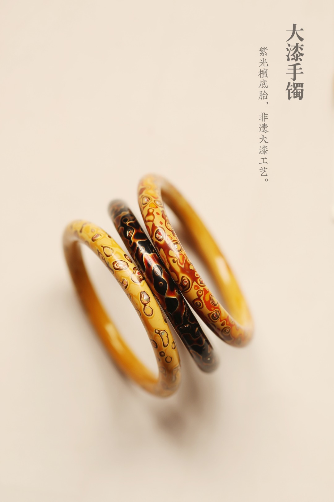 大漆 | 手镯紫光檀底胎,非遗大漆工艺,腕上风景,看上去华贵,戴起来轻松,可正式