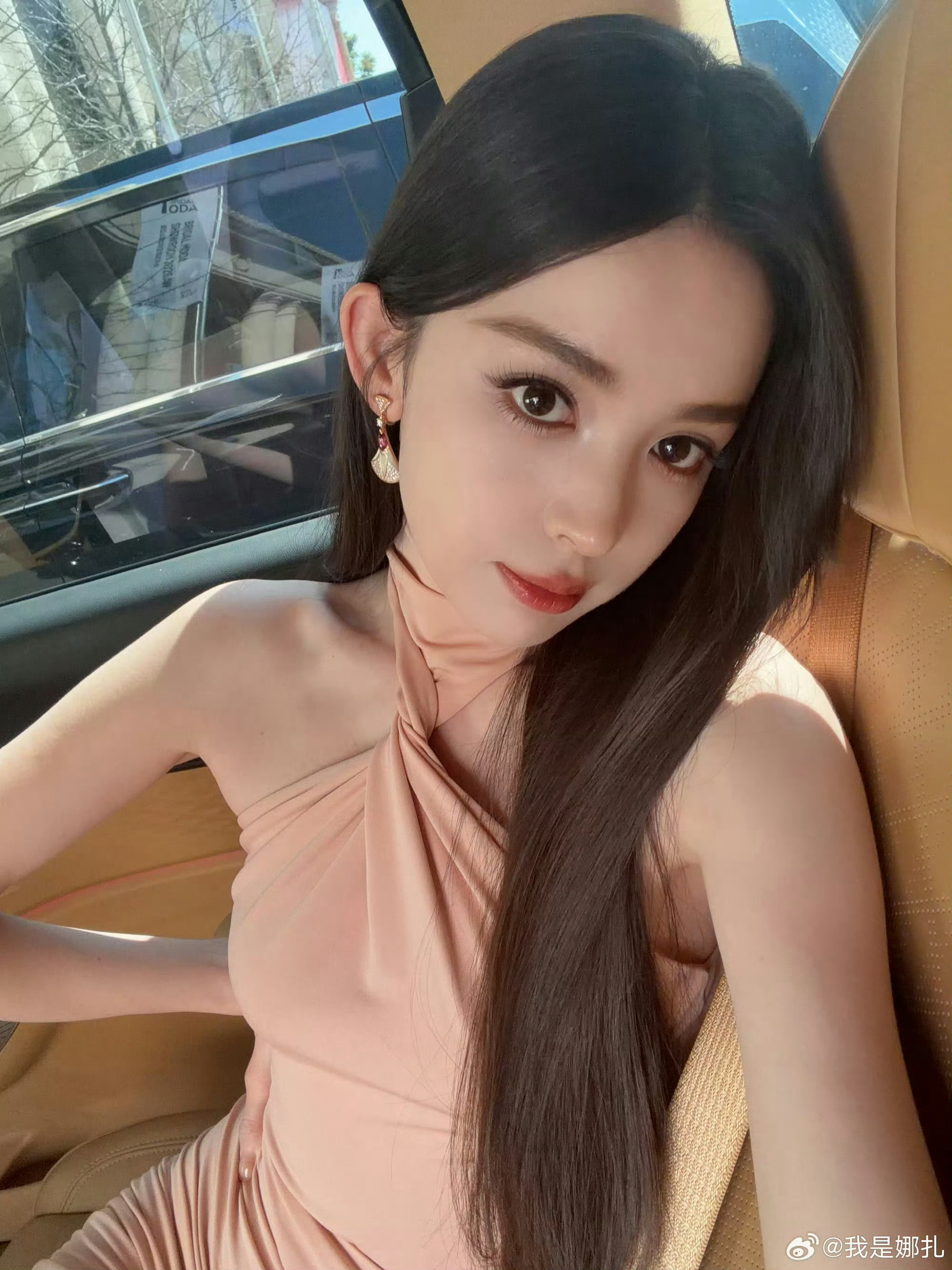 娜扎春日车内自拍娜扎淡粉挂脖裙好绝掉落一组车内自拍黑长直配裸粉挂脖裙,温柔又性感,阳光落在脸上氛围感拉满!姐就是硬美