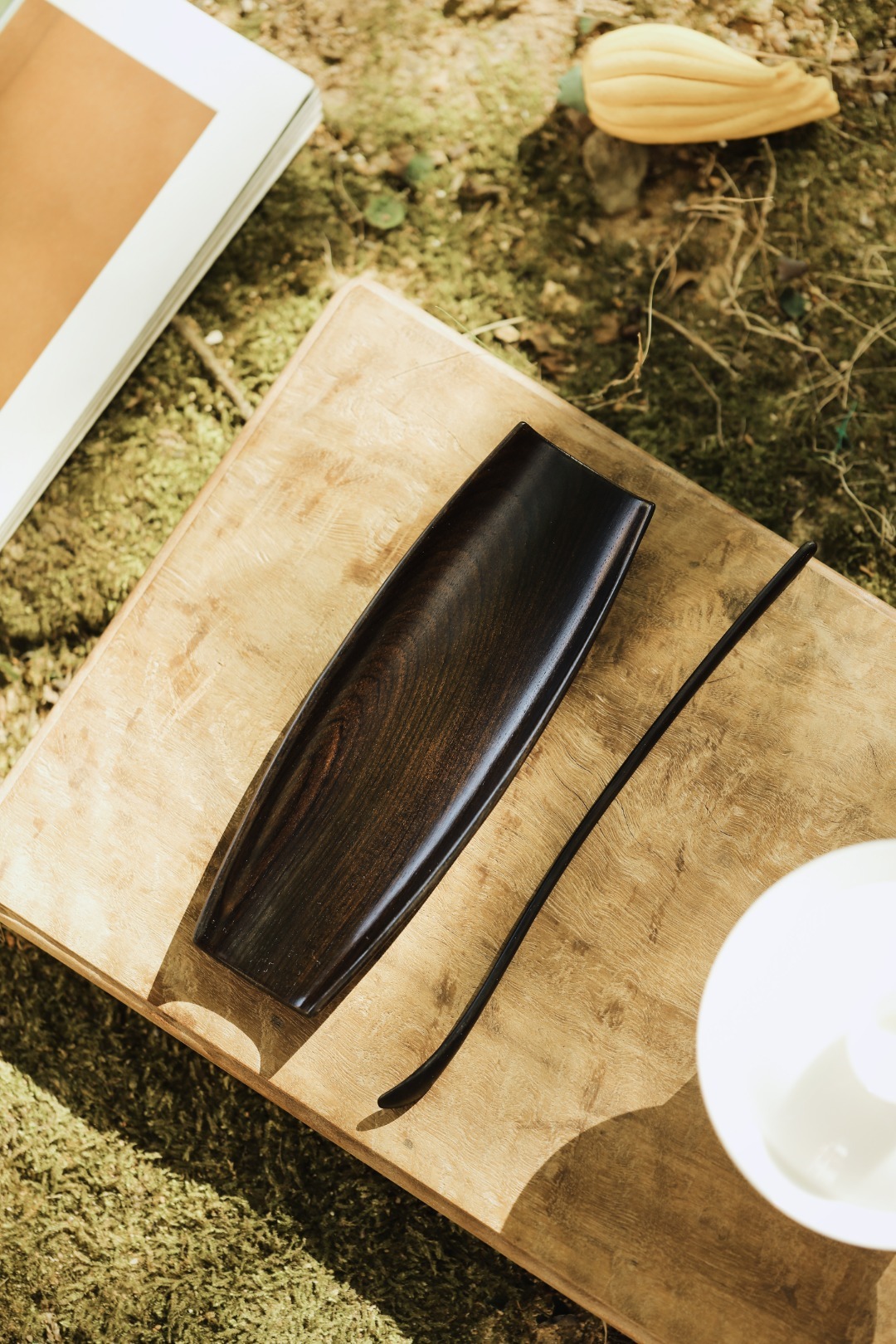 紫光檀 | 茶则质感温润、光泽柔和,透出素雅的韵味。置于茶席一侧,沉静不喧嚣。1