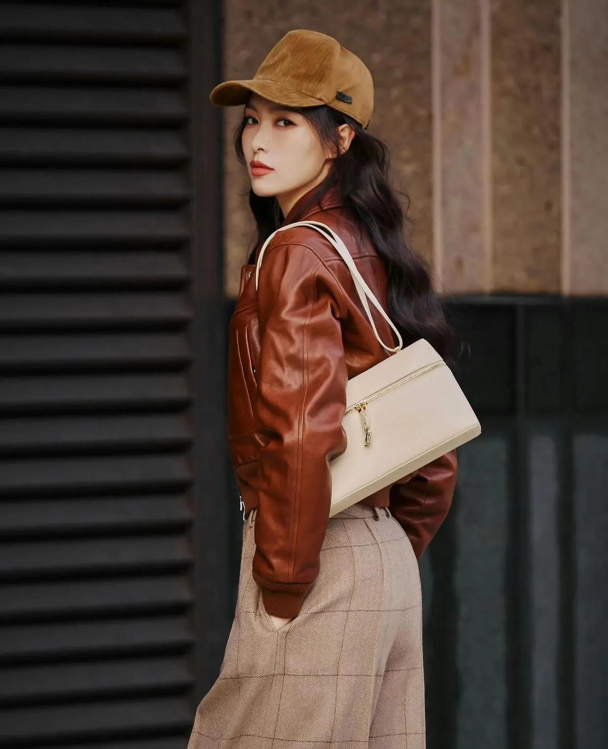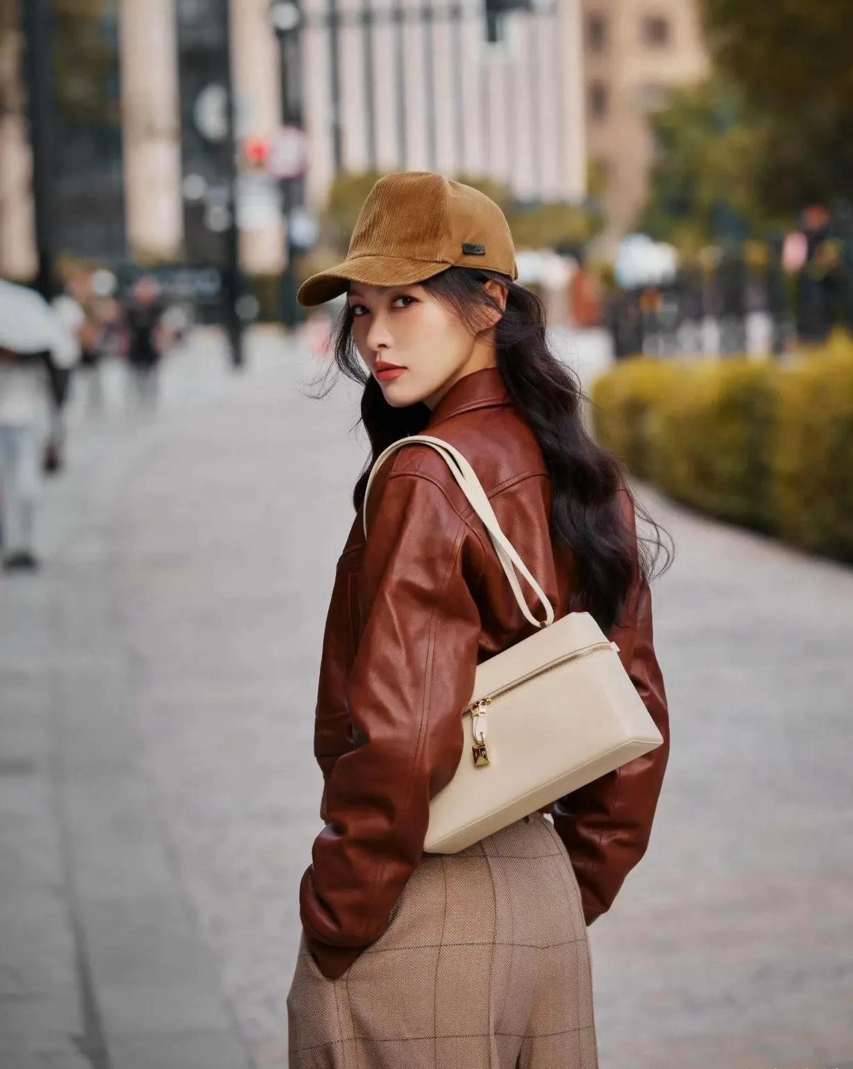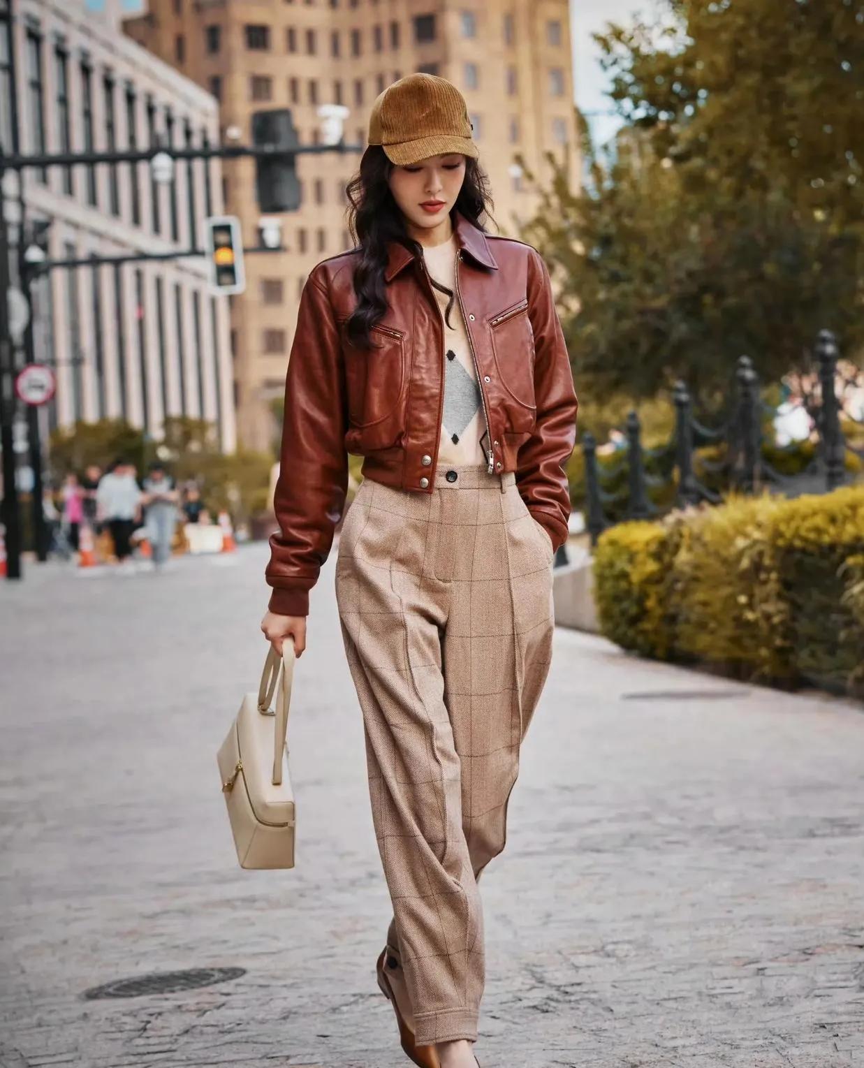 唐嫣这套美拉德穿搭直接封神!棕色短款皮衣+格纹阔腿裤,把秋日氛围感焊在身上了✨ 短款皮衣利落显高,格纹裤藏肉又松弛,同色系搭配高级感拉满,又飒又优雅,谁穿谁是街头女主角! 唐嫣 美拉德穿搭 秋日穿搭 皮衣穿搭