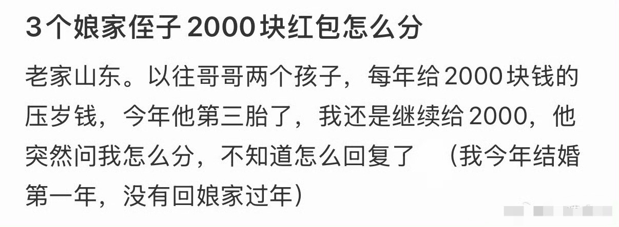 3个娘家侄子2000块红包怎么分?