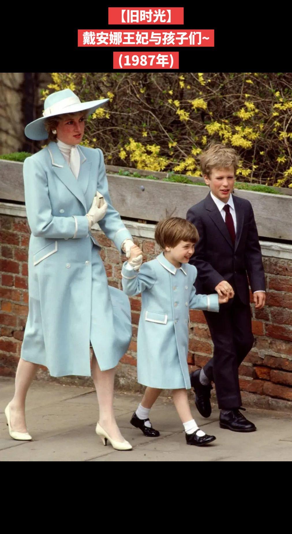 【旧时光】1987年复活节,戴安娜王妃与威廉王子身着凯瑟琳·沃克设计的浅蓝色亲子