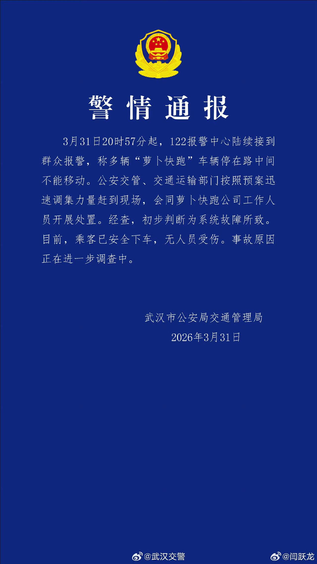 武汉萝卜快跑集体摆停,官方初步判定为系统故障。车辆高度依赖云端和网络,一旦网络波