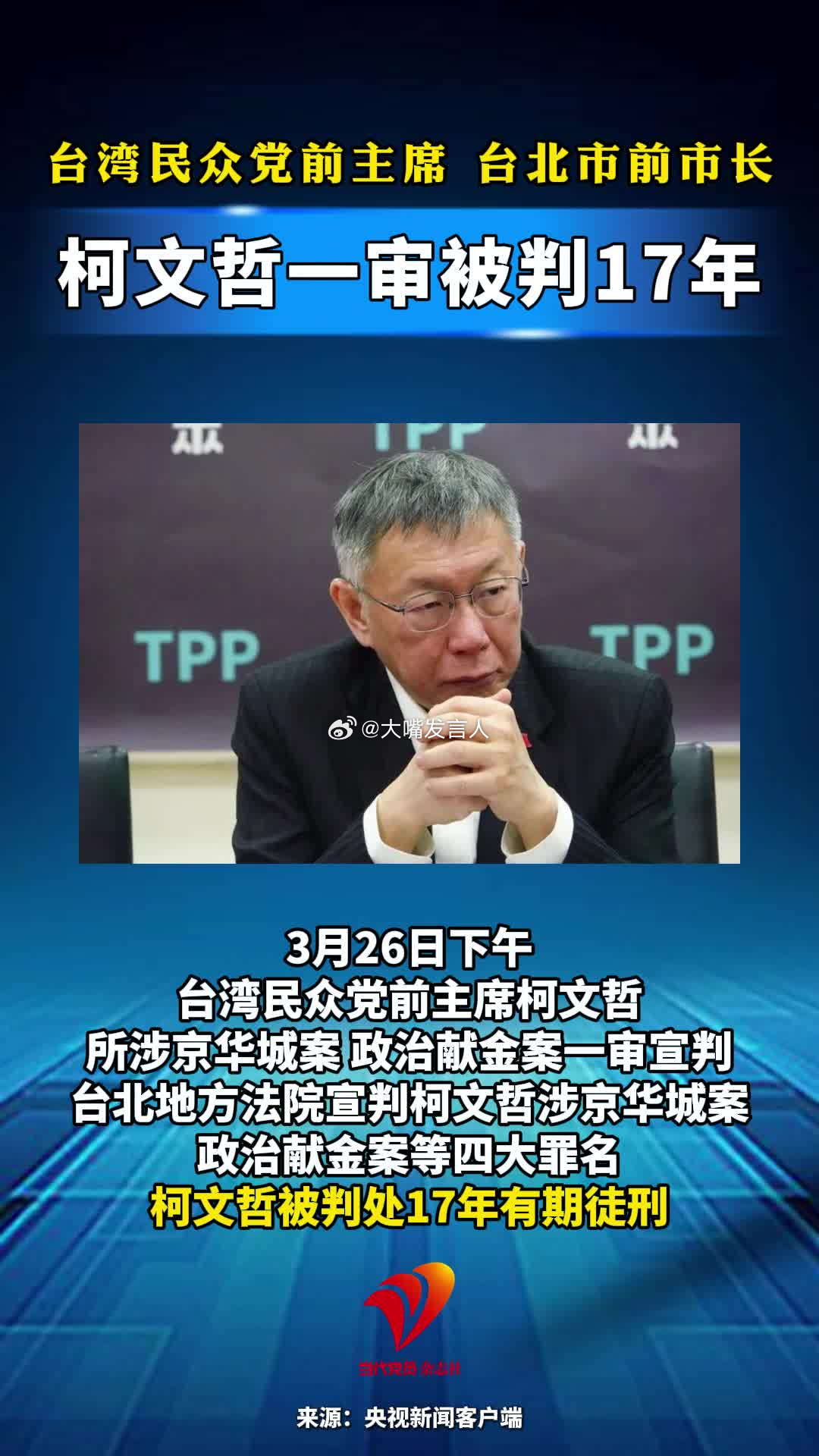 热点观点,柯文哲一审被判处17年 ,柯文哲所涉京华城案政治献金案一审宣判