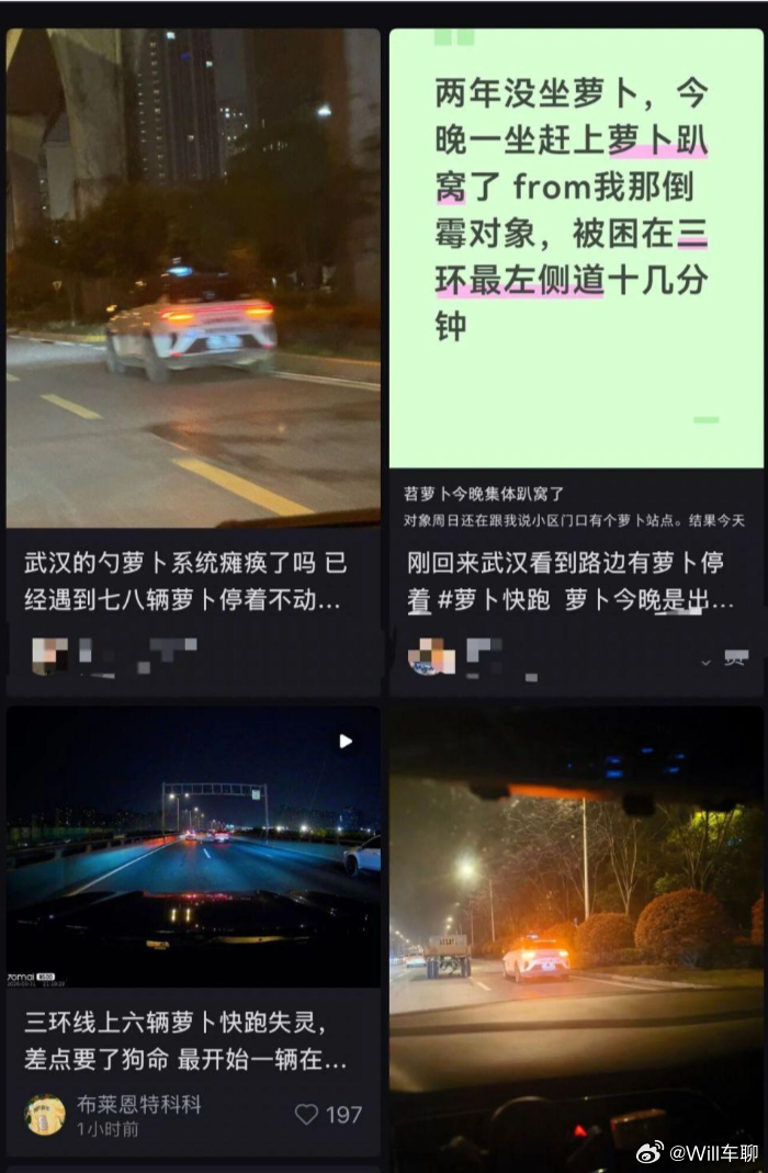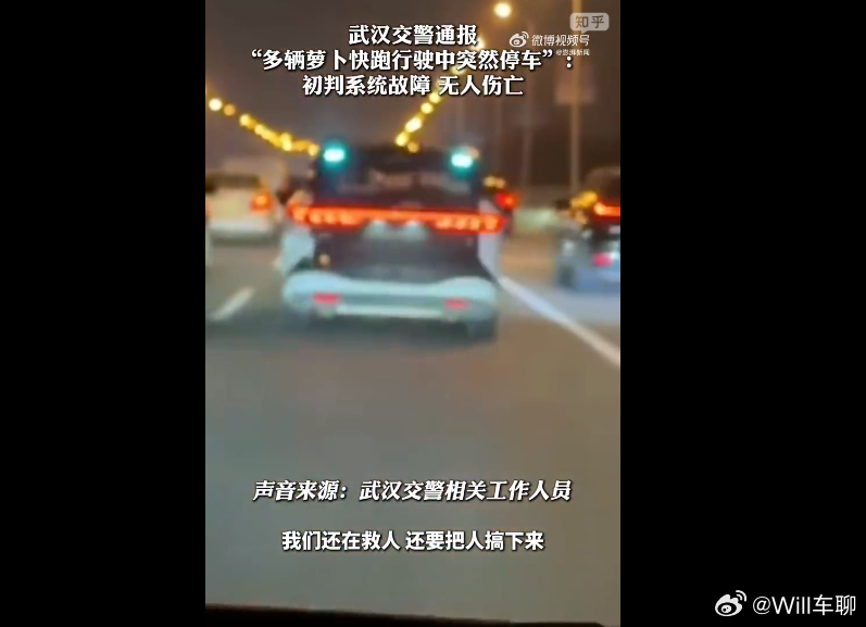 昨天武汉的一个片区的萝卜快跑全部断网,说是萝卜快跑本身系统出了问题。