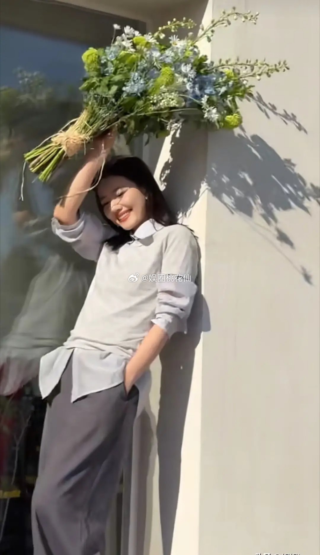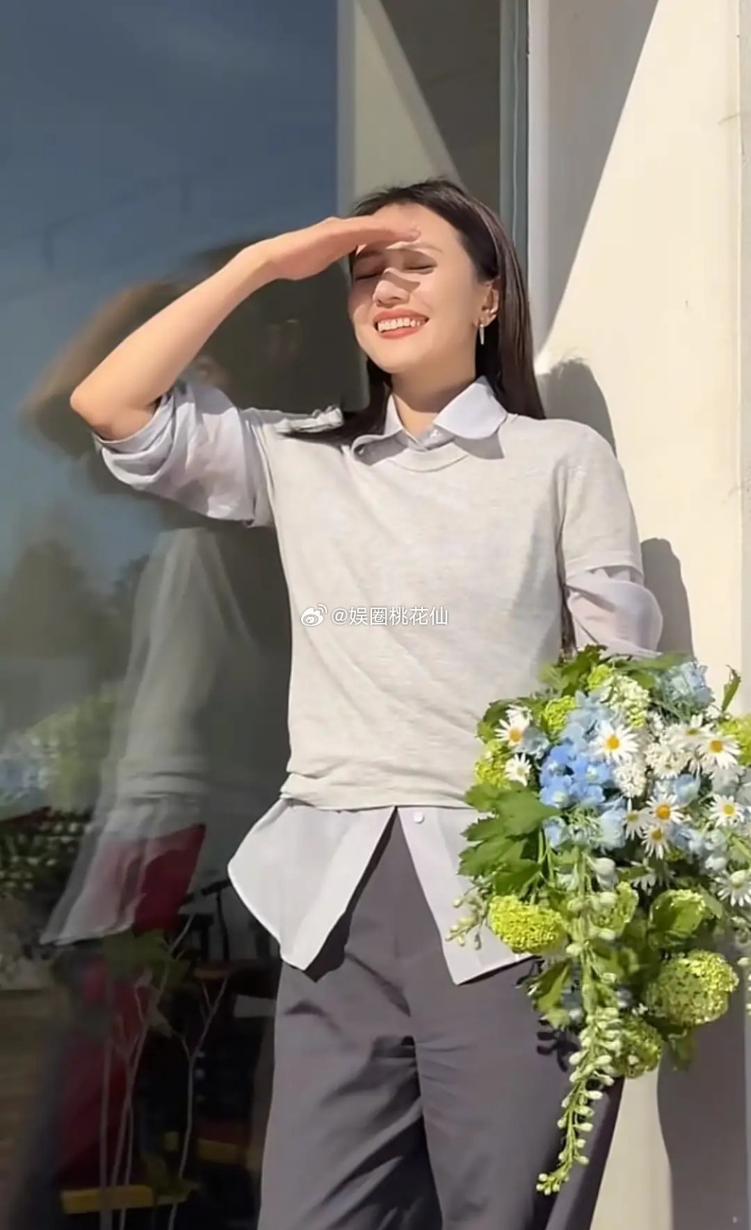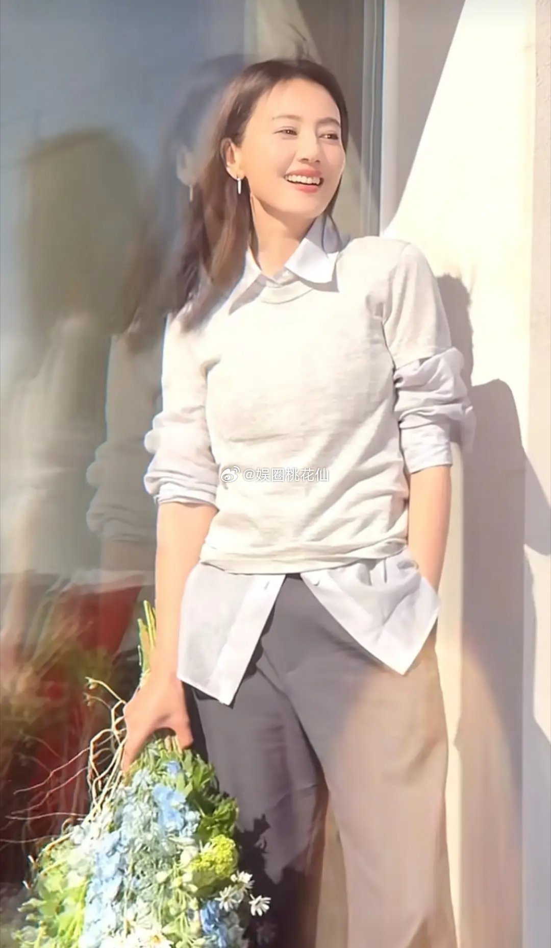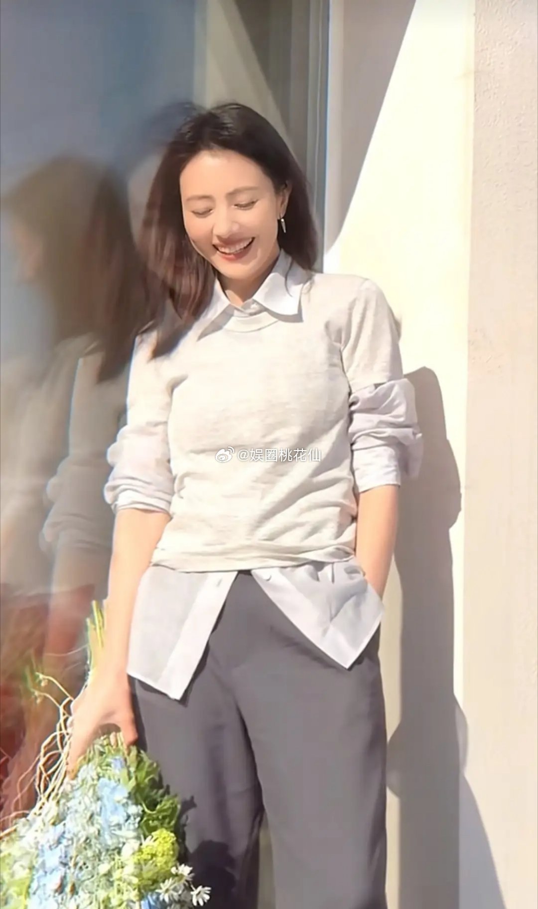 46岁高圆圆春日穿搭衬衫+短袖+灰裤子,减龄又清爽,嫩得像26岁!!!!!