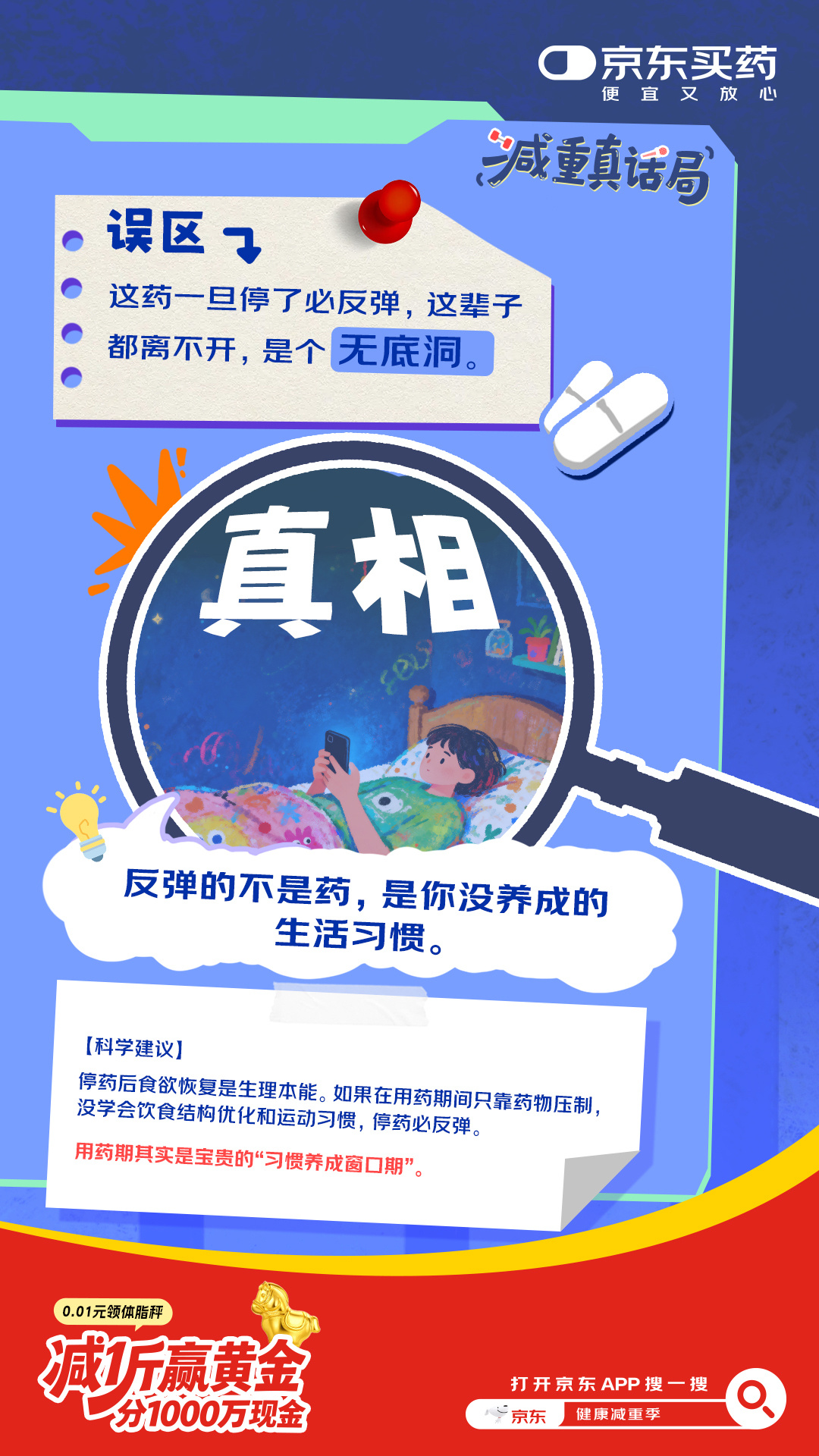 😫怕停药就反弹?愚人节告诉你减重针的真相!❌“减肥针一旦停了必反弹,这辈子都离不开?” 这是最大的误区!✅ 关键逻辑:停药后食欲恢复是生理本能,反弹与否取决于用药期间是否养成健康习惯 —— 只靠药物不调整饮食运动,才容易反弹!还有这些真相你要知道:“打完针不用运动?” 不做抗阻运动会掉肌肉、降代谢“微商海外药靠谱?” 无冷链保障,药效和安全都没谱!👉 戳图查看《科学减重 9 大真相》,学会停药不反弹的正确方法!参与京东买药「快乐减重全国挑战赛」:📱 体脂秤每日打卡,记录身体变化💰 千万奖金 + 黄金现金,减重有奖励更持久!专业医生审核用药方案,全程医药冷链配送,让你瘦得科学、停得安心!立即参与: 网页链接 京东买药健康减重季京东买药以斤换金