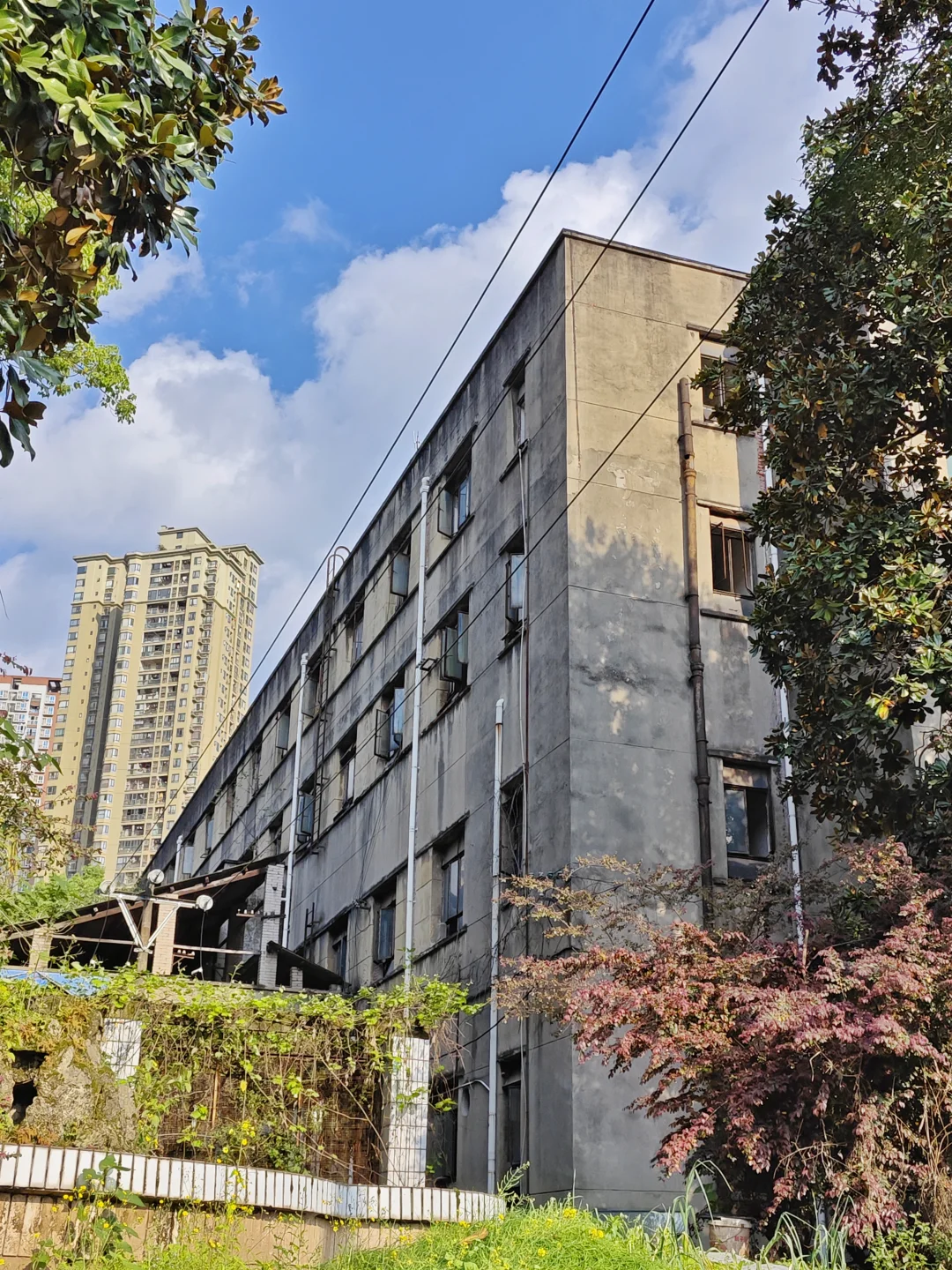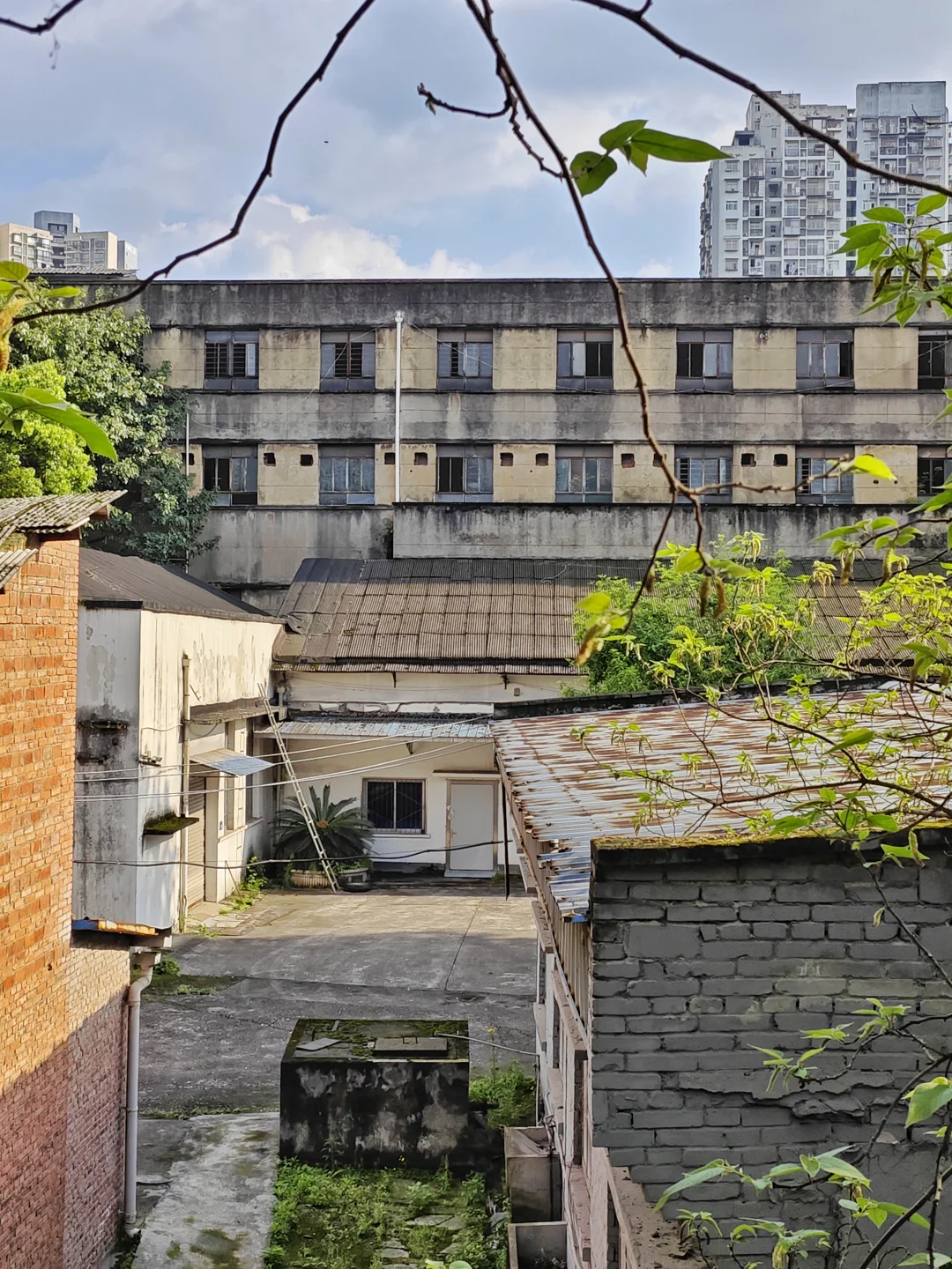 这几十年里,质量研究所应该主要就在石马河这里,因为这里面的办公楼就是1980年代的风格,还有几栋平房应该是实验室或者仓库,年代更久远,应该是1970年代的,那个烟囱看起来也像同一时代的产物。目前这里全部搬走,搬到了大竹林新办公地,这里就空置了五六年。据说研究所想把这里的房屋卖出去或者租出去,但是卖价开价五千万,买方只愿意出1500万,最后没谈成。研究所也想把这些房屋租出去,但除非价格很低,不然这几个厂房倒大不小的,大公司在这里办厂地方展不开,小公司在这里办厂又租不起。如果要搞成文创园,我看肯定没戏。想想小龙坎交机厂那么大都搞不起来,只能靠忽悠人去投资。最近那个圈子的人又把大石坝江陵厂的电影院盘下来准备搞成江陵茶馆,到底能不能挣钱我倒是拭目以待。