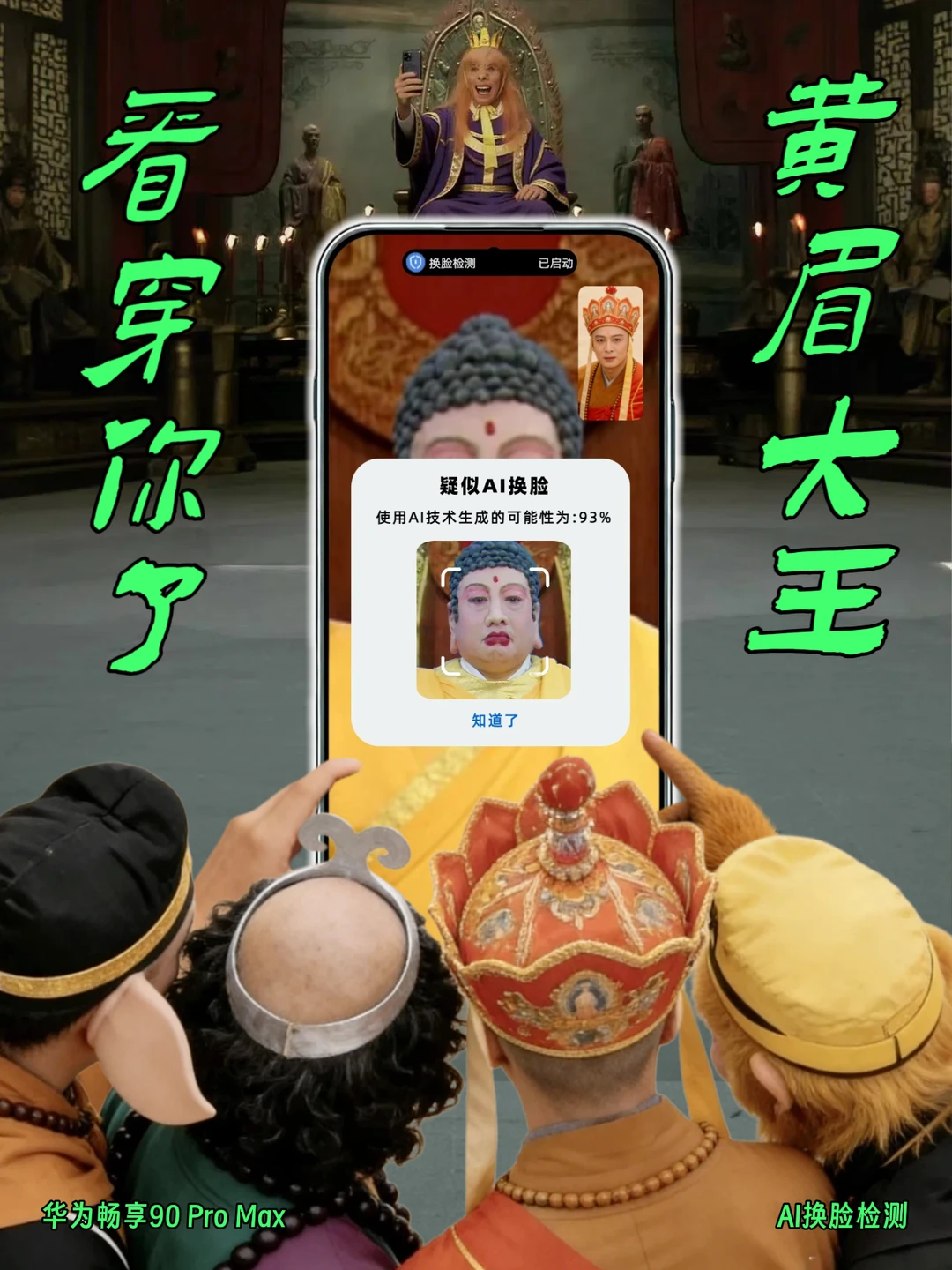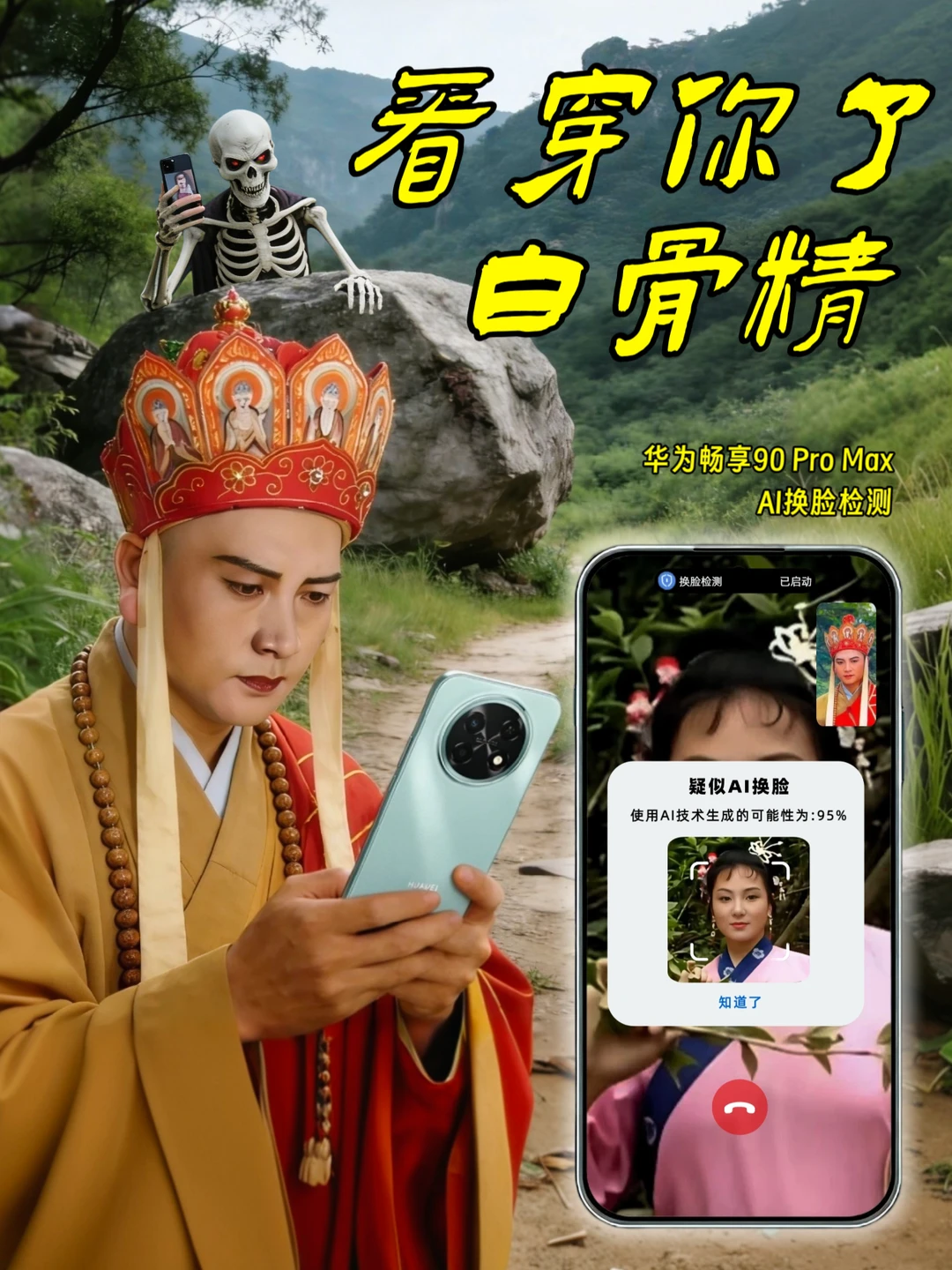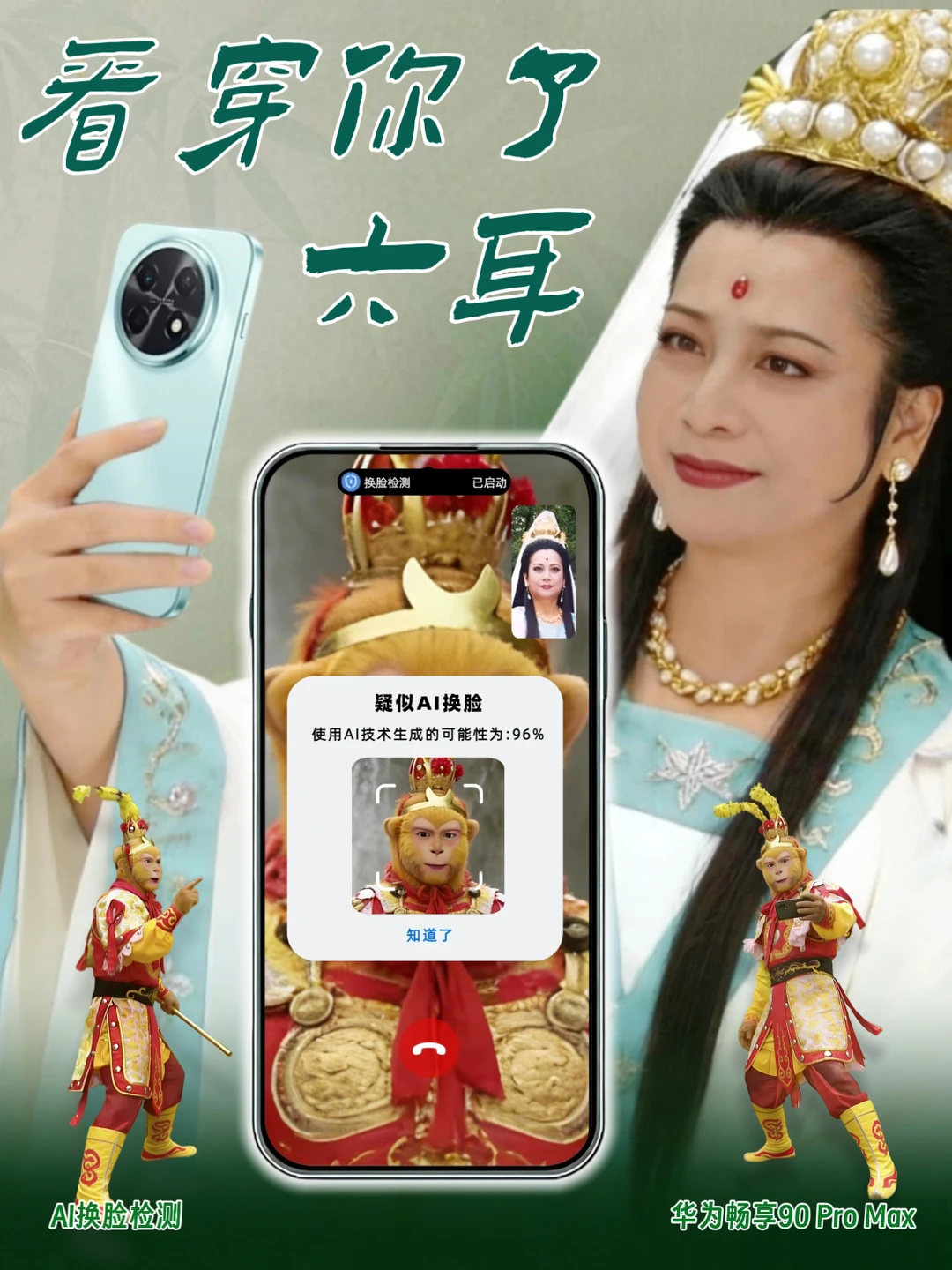 ✅️有了畅享90 Pro Max的AI换脸检测 🔥自带「火眼金睛」,妖魔鬼怪一眼看穿 师徒感情不被离间了,大圣顺利get芭蕉扇了 黄眉大王还是童子,金铙不需要亢金龙用头钻了 真假美猴王也不用难倒天上地下众神仙了 [绿色心形R]视频通话即时提醒,守护咱的信息安全 评论区说一个你觉得AI换脸检测能看穿的名场面,呼声最高的我给安排下一组[萌萌哒R]
