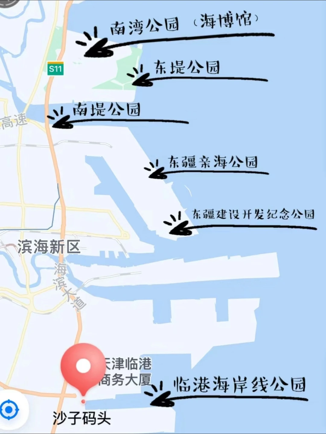很荣幸第二次加入中新天津生态城半马领跑员的队伍,这次也升级了2:15组别,开心🥳期待赛道见~ 同时作为纯纯本地人,欢迎大家来到天津滨海新区,附海边免费宝藏公园游玩攻略[斜眼R] ❶中新友好花园 ✔️天津“小新加坡”打卡地[打卡R]2026年生态城半马终点,将新加坡的滨海湾花园理念植入,还原了一个临水而建、绿地遍野的小“花园城市”。 ❷国家海洋博物馆 ✔️来天津必去top1,临海而建的免费海上故宫,3层4.21万件藏品,寓教于乐的颜值天花板。 tips:参观须提前预约,凭身份证入馆,每周一闭馆(节假日除外)新开放夜场,开馆时间为9:00-17:00,16:30停止入馆。 ❸南湾公园 ✔️海博馆对面,可以一起玩,钓螃蟹捞鱼,玩沙子、海边帐篷 ❹东堤公园 ✔️天津唯①一个带状公园,拥有3公里海滨步道。露营和海边日出bi去🌅也有布局合理的卫生间配套。 tips:园内🈶️海盗船游乐场,沙池广场、戏水池,都是免费、非常适合遛娃。公园北至尽头处就是妈祖文化园,开放时间8:30-17:30,建议游览时间20-30分钟。 ❺南堤滨海步道公园 ✔️设有帐篷营地、无烟烧烤区、免费露营点、免费无动力设施童梦乐园,还有海边骑行、咖啡厅等。 ❻东疆亲海公园 ✔️天津最孤独罗森所在地,喂海鸥、赶海好去处! tips:提前看好潮汐表、穿拖鞋、带挖贝壳工具、给孩子带衣服、防晒。 ❼东疆建设开发纪念公园 ✔️小众、人少,很多人去看蓝眼泪的地方。方形石头错落有致在海边,静听海浪拍打,不一样的安静和浪漫。 ❽临港海岸线湿地公园 ✔️新建免费宝藏公园,海水非常清澈,在岸边可以看到很多透明的水母和小鱼,赶海拾贝🏖️玩沙戏水⛺️