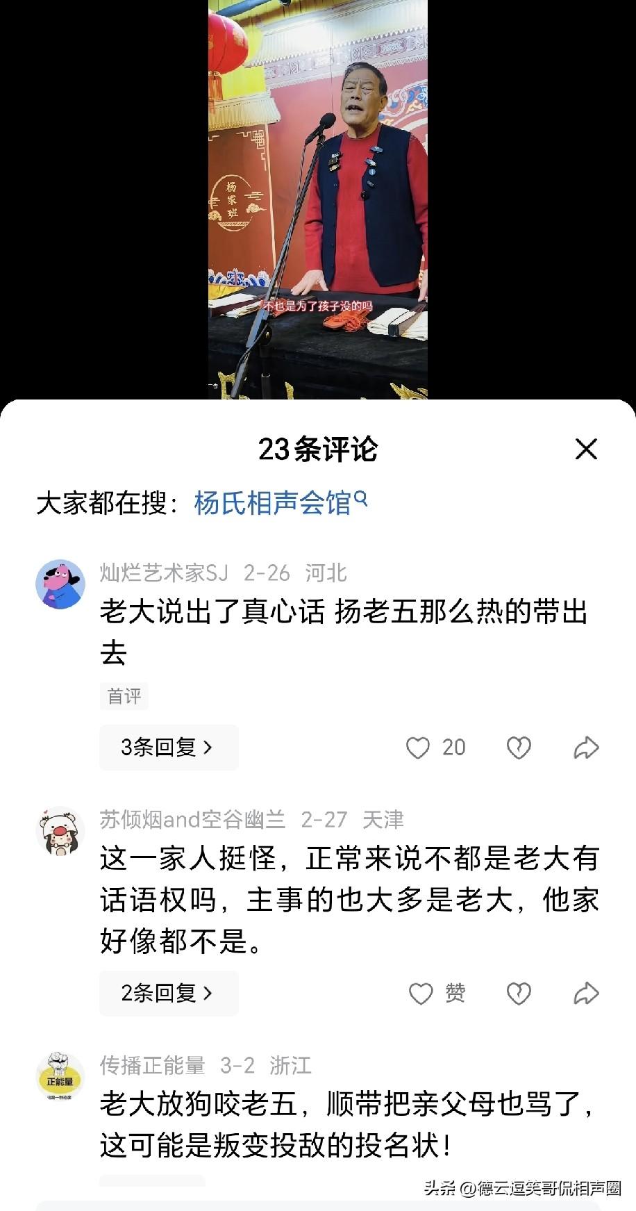 承认父亲天热走的?相声泰斗杨少华的长子杨威表示:“我父亲杨少华啊,这么热的天儿走了。有啥好说的呢,不都是为了子女晚辈着想嘛。可怜天下父母心呐,所以说他也不容易。他也希望他的儿孙等晚辈能过得一天比一天好。做长辈的,那么大岁数了,图啥呢?”