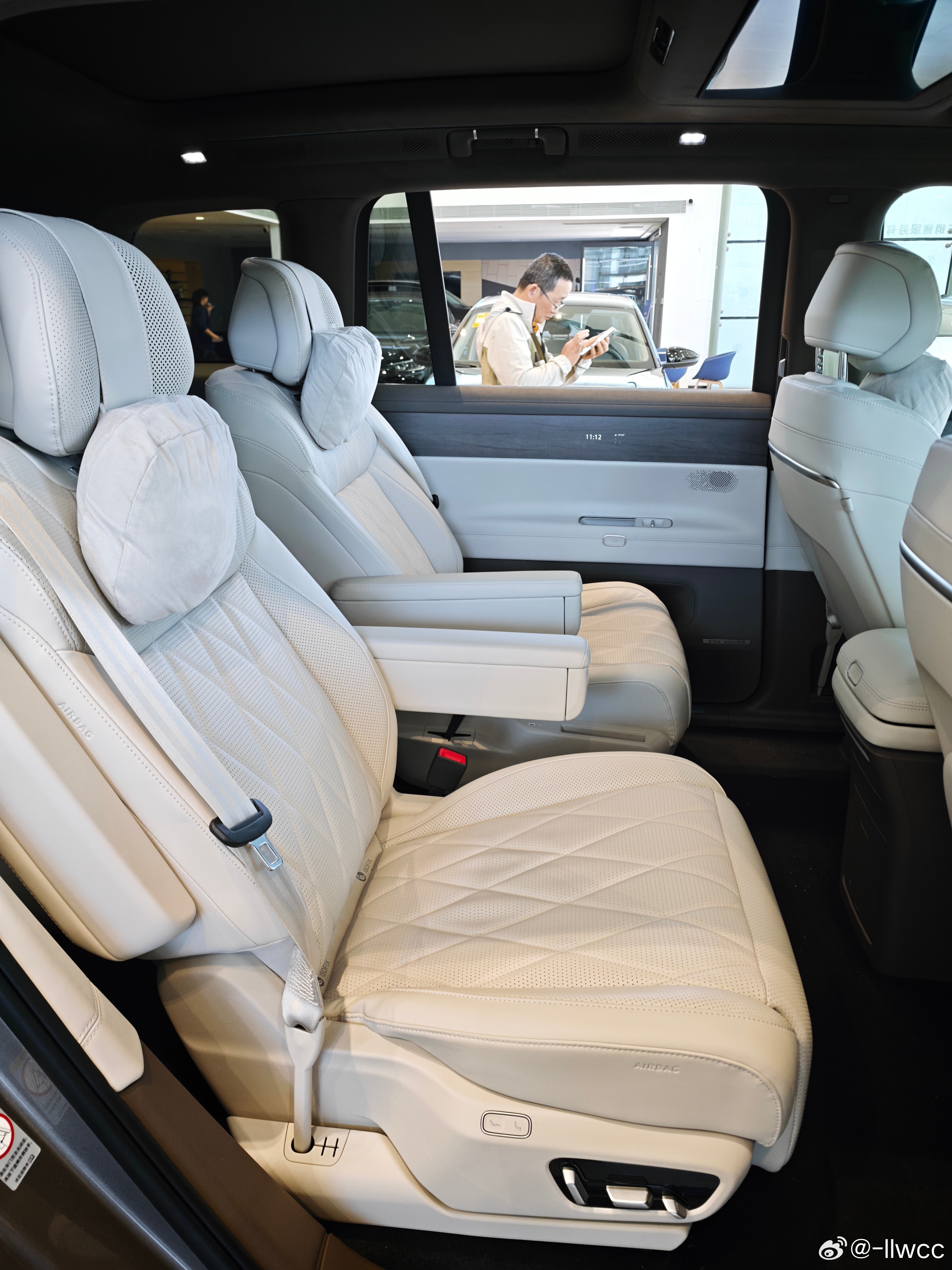 前两排乘坐体验不错,空间比较宽敞,座椅很舒适,面料和填充都可以说优秀,前排门板上还有致敬帕萨特领驭的、带排水口的“隐藏式雨伞盒”,中央扶手也很宽适,二排甚至配备了可收折的外侧扶手。除左后座以外的其他三个座位都带零重力模式,很适合睡觉,座椅按摩也能全面覆盖身体。