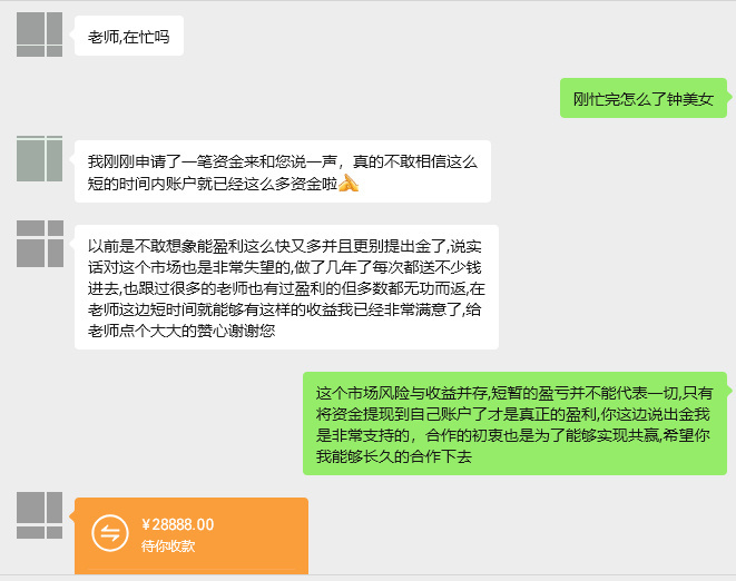 不管当时的心情如何,只要一听到客户说要把赚的资金出金我就会很开心发自内心的开心,因为这是我我一直以来所追求的目标跟方向。让实盘客户资金稳健增值一直是我们的最终目的,黄先生加入实时指导两个月的时间,目前已成功把盈利部分出金,这样富有成就的感觉真的很不错,未来继续加油金价黄金